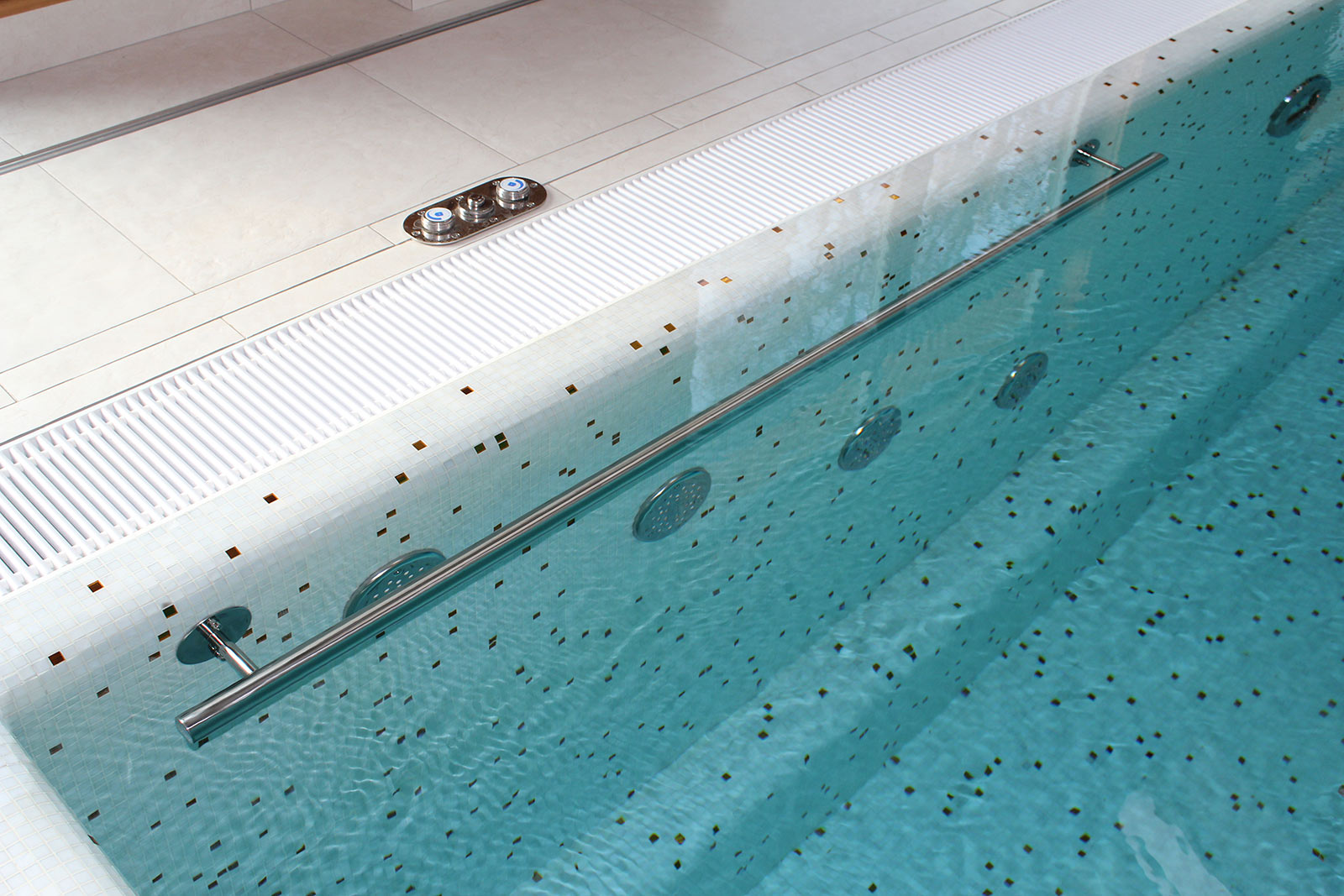 Дополнительное оборудование, аксессуары: прожекторы LED RGB Hugo Lahme, гидромассаж Combi-Whirl (4 форсунки) Hugo Lahme, защитное покрытие подводного размещения.