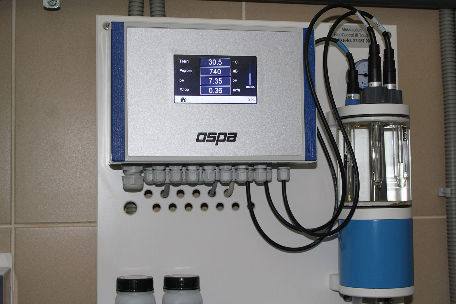 • Дезинфекция — хлорозонные установки Ospa 15A — 2 шт, дозирование средств корректировки рН и флоккулянта.