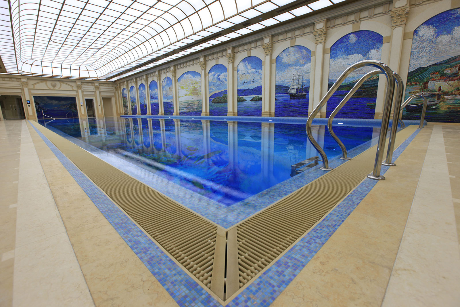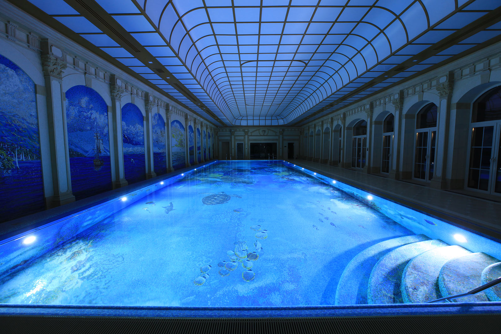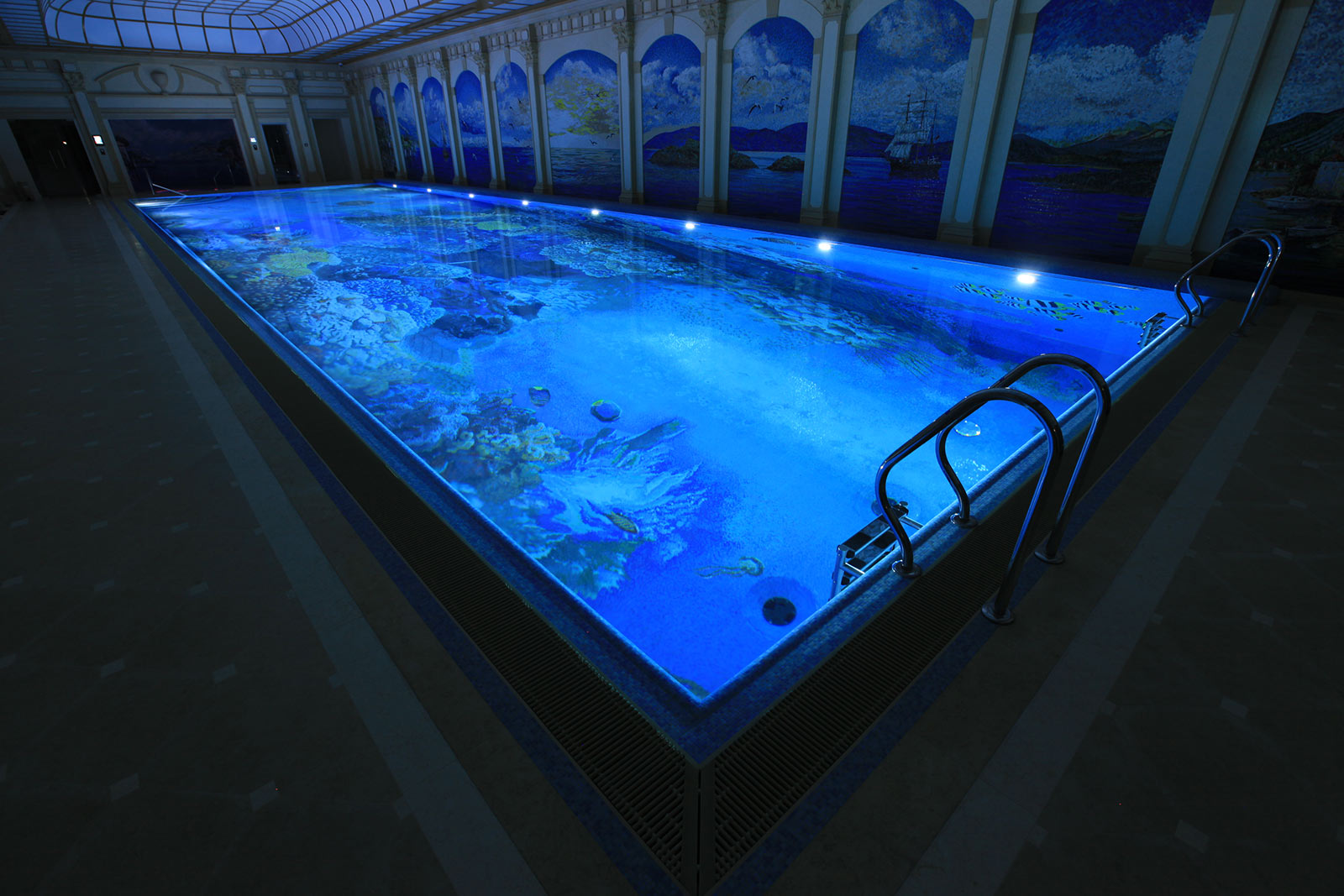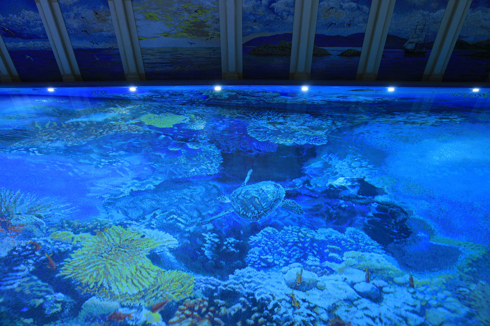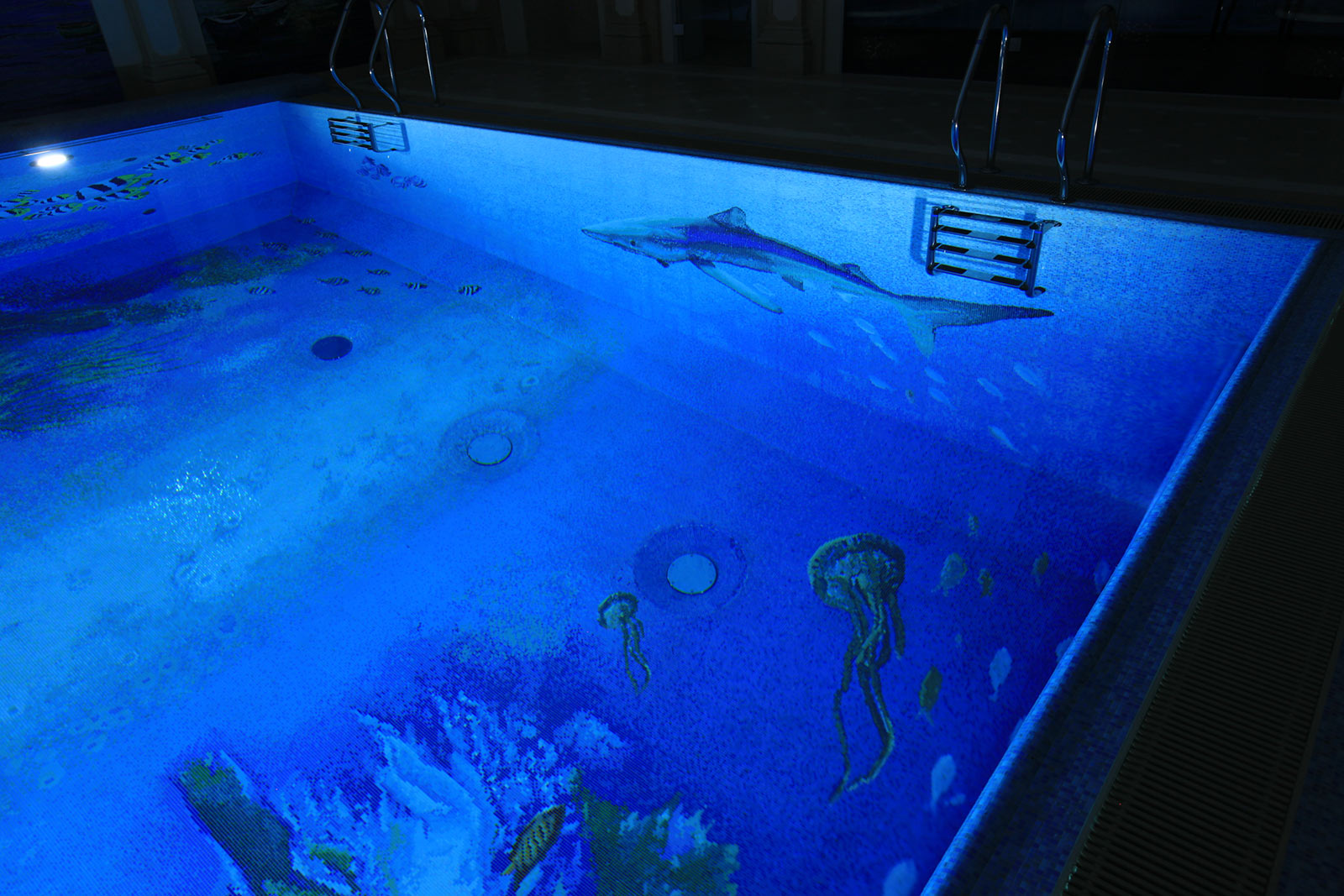 Использованные отделочные материалы: мозаика (в бассейне использована мозаика с декоративным пано «водный мир»).