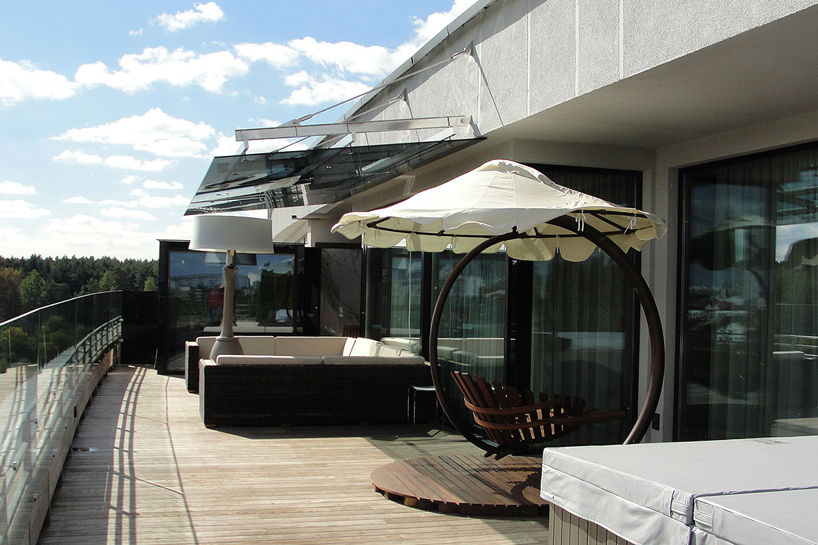 Оригинальное решение «Wellness зоны» на открытой террасе размером 5х40 м было реализовано в Беларусии в Минске ул. Филимонова д. 20 кв. 16 летом 2016 г.