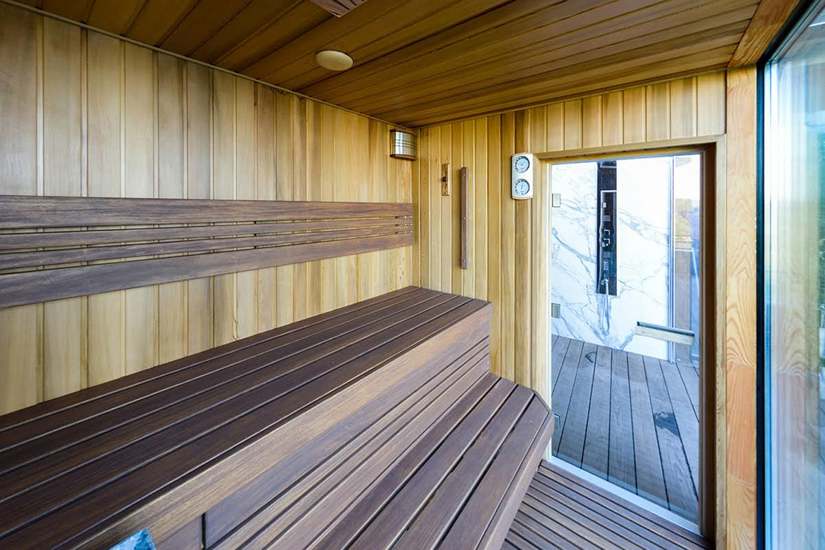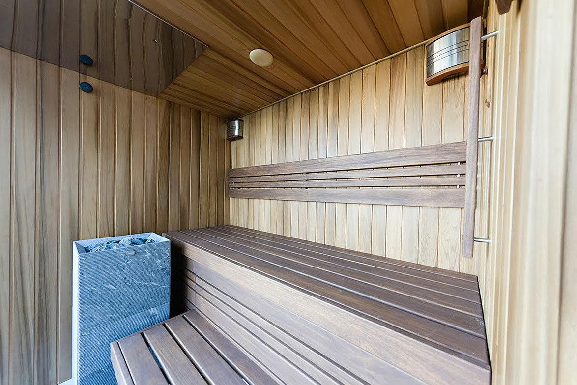 Из оригинальных решений в сауне применена система рециркуляции горячего воздуха, через воздушный потолочный клапан Pilsa, для увеличения температуры воздушного потока под основным верхним полком. Кроме того, данная система позволяет понизить температуру в парной до оптимальной кондиции в русской бане 60°C и 50-70% влажности.