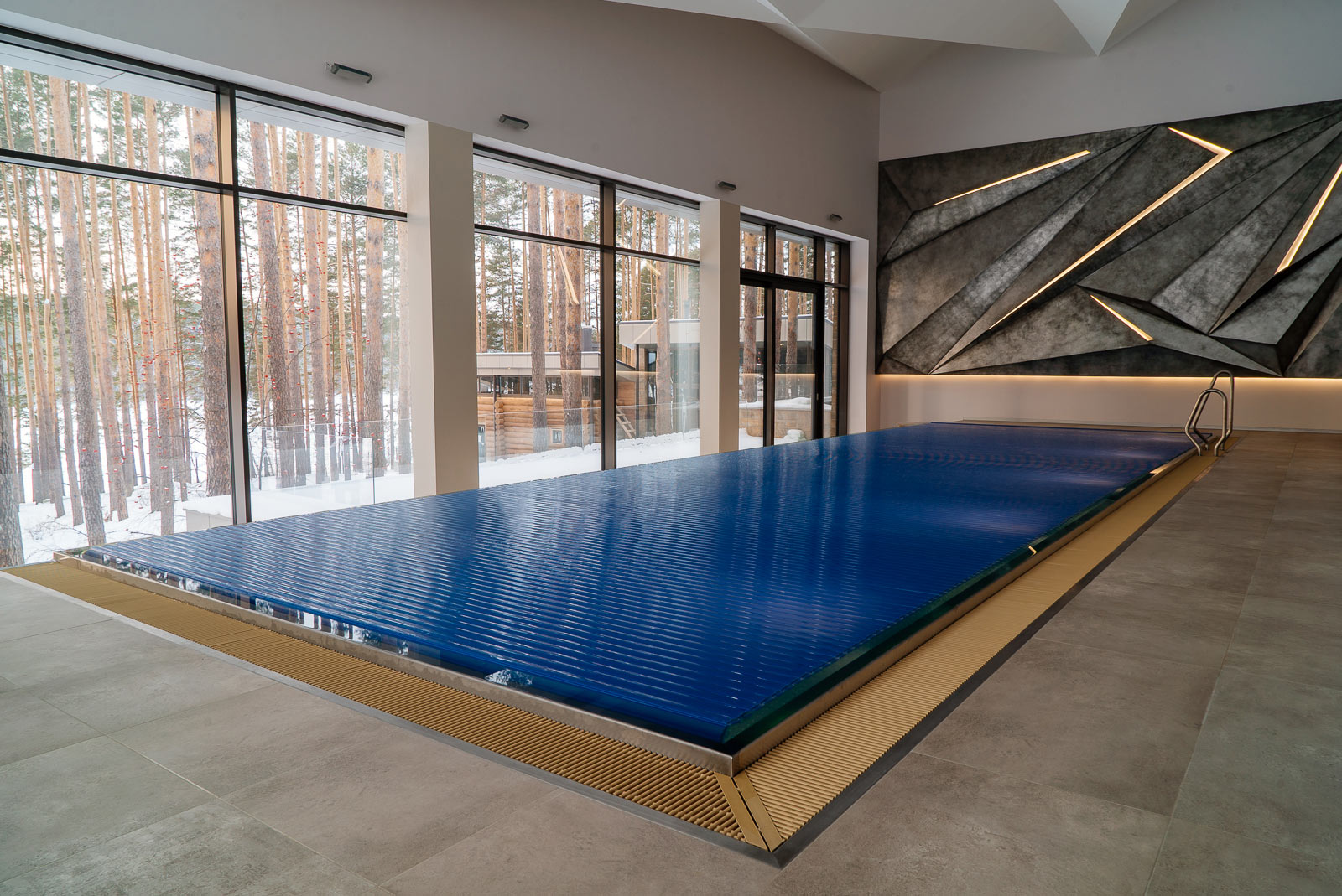 • Жалюзийное покрытие RolloSolar, Германия, инсталлированное в днище ванны бассейна.