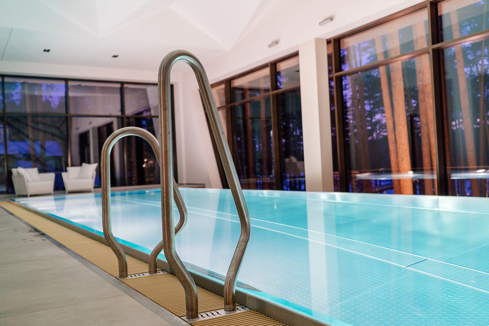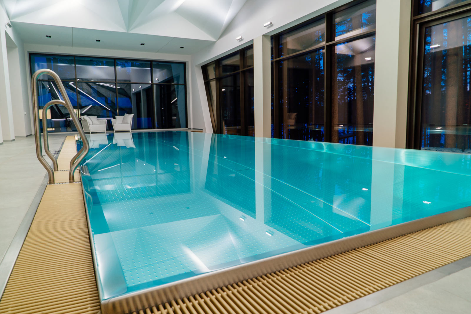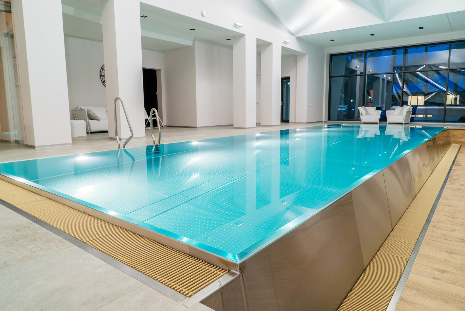 Ванна бассейна — цельносварная из нержавеющей стали производства компании e.s.m. GmbH (Германия).