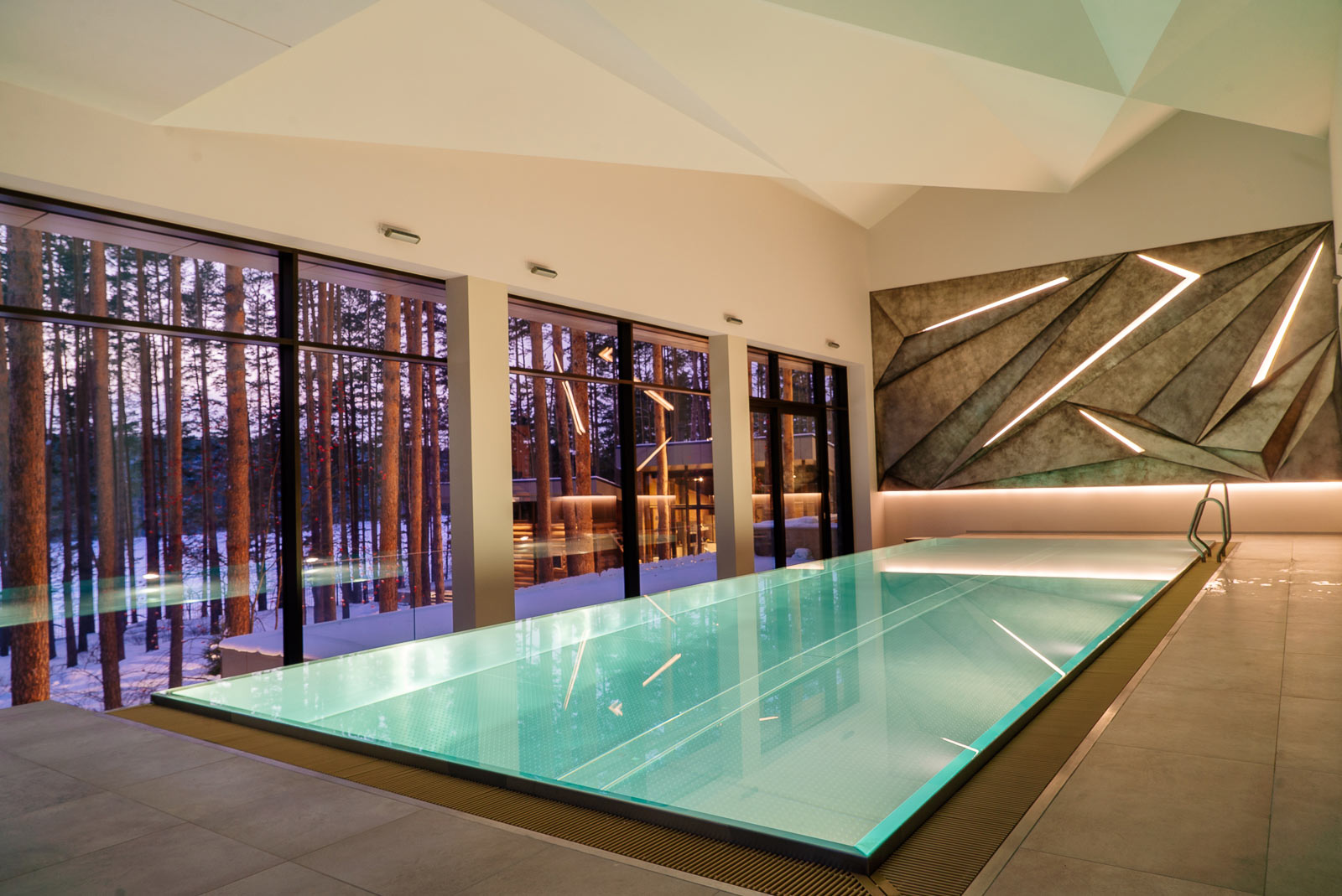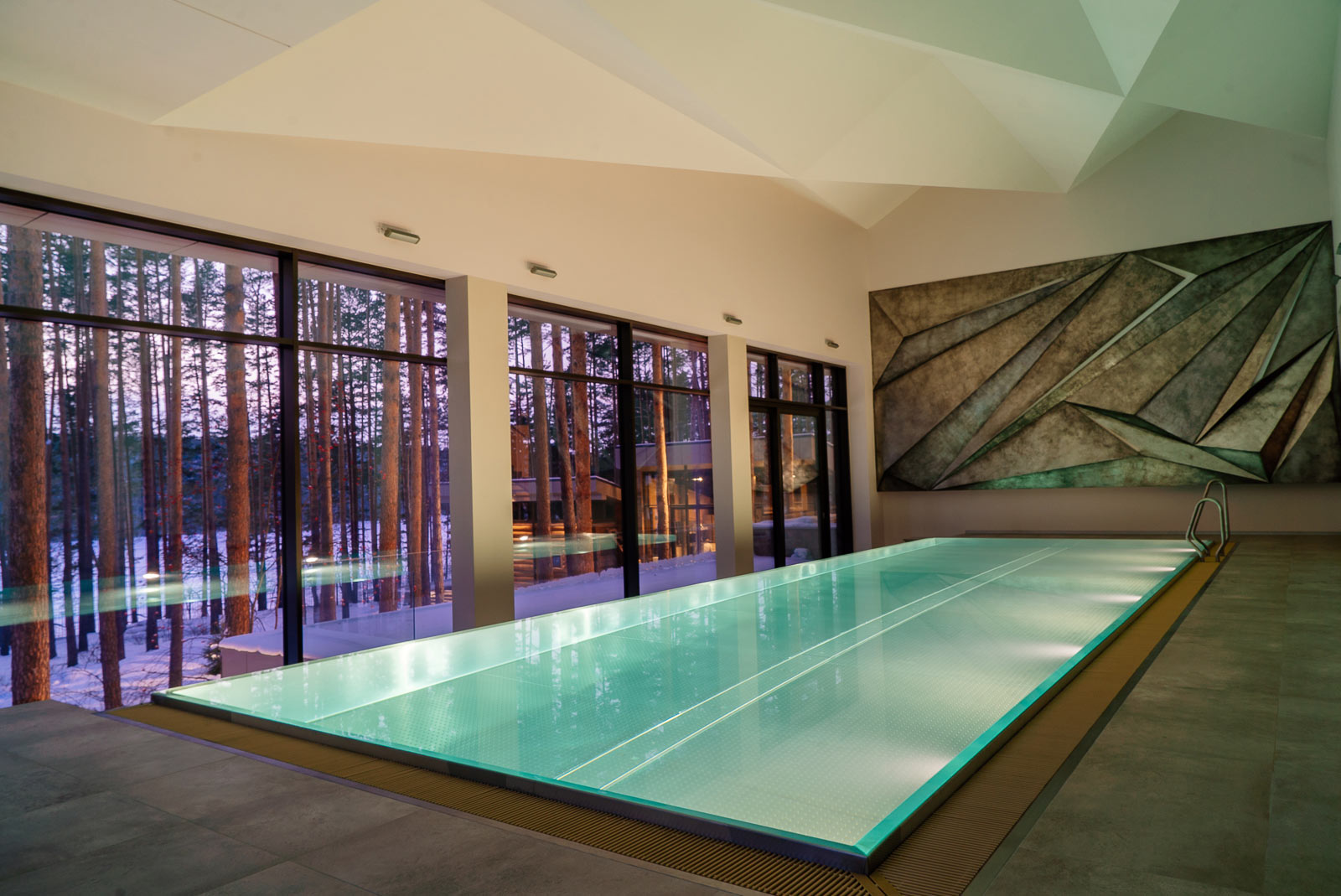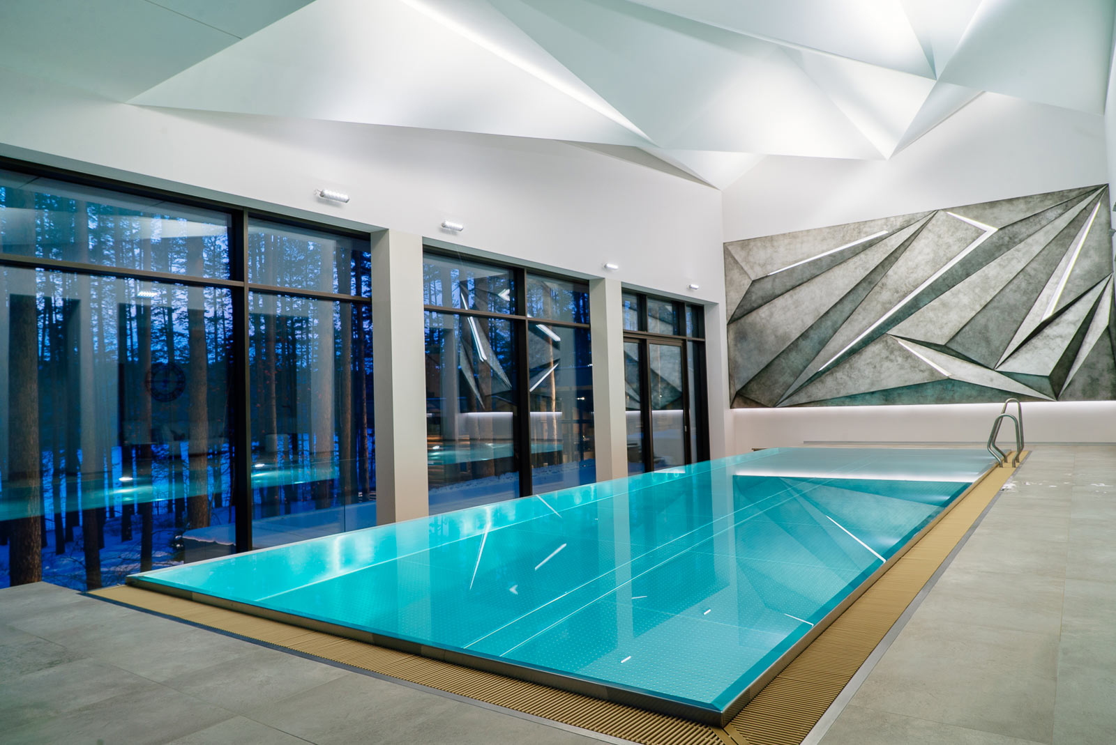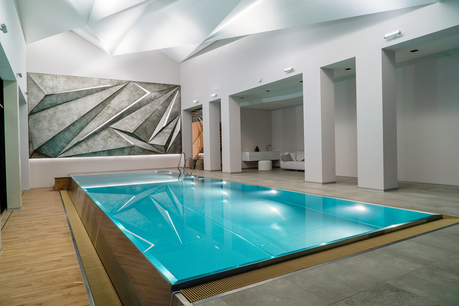 Ванна бассейна — цельносварная из нержавеющей стали производства компании e.s.m. GmbH (Германия).