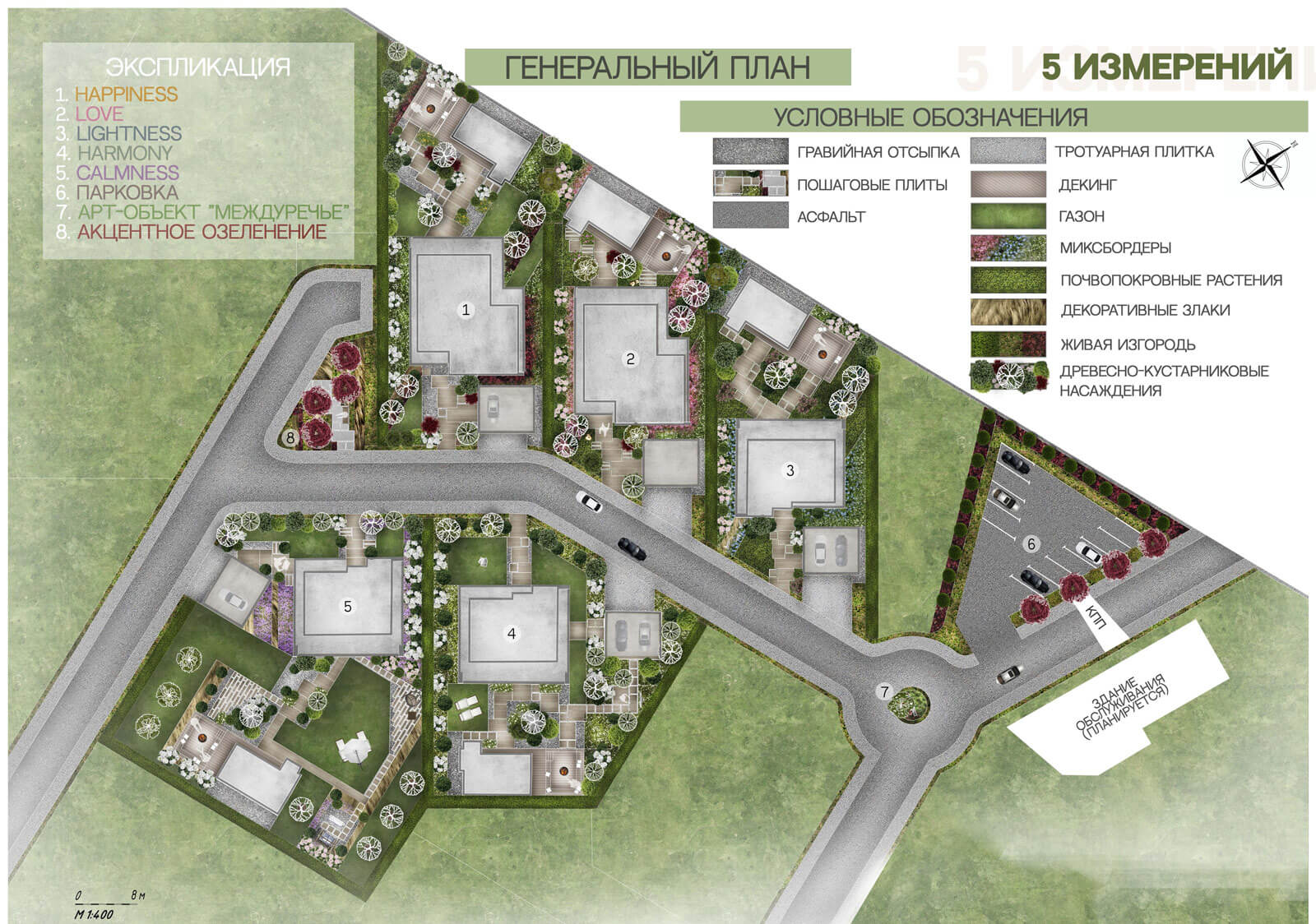 «Ландшафт, вызывающий эмоции!» — самый точный девиз новому проекту «5 измерений», так как в современном мире сад становится местом, где хочется восполнить свои ресурсы, получить положительные эмоции и обрести позитивные воспоминания. В саду можно погрузиться в свои внутренние миры, осознать свои чувства, переживания, принять их и понять себя глубже. Поэтому Сад становится местом самопознания. Проектируя данную территорию, следовало основываться на коммерческую составляющую проекта. Важно было учитывать потенциальных посетителей и гостей сада, их возможные интересы, желания и эмоции!