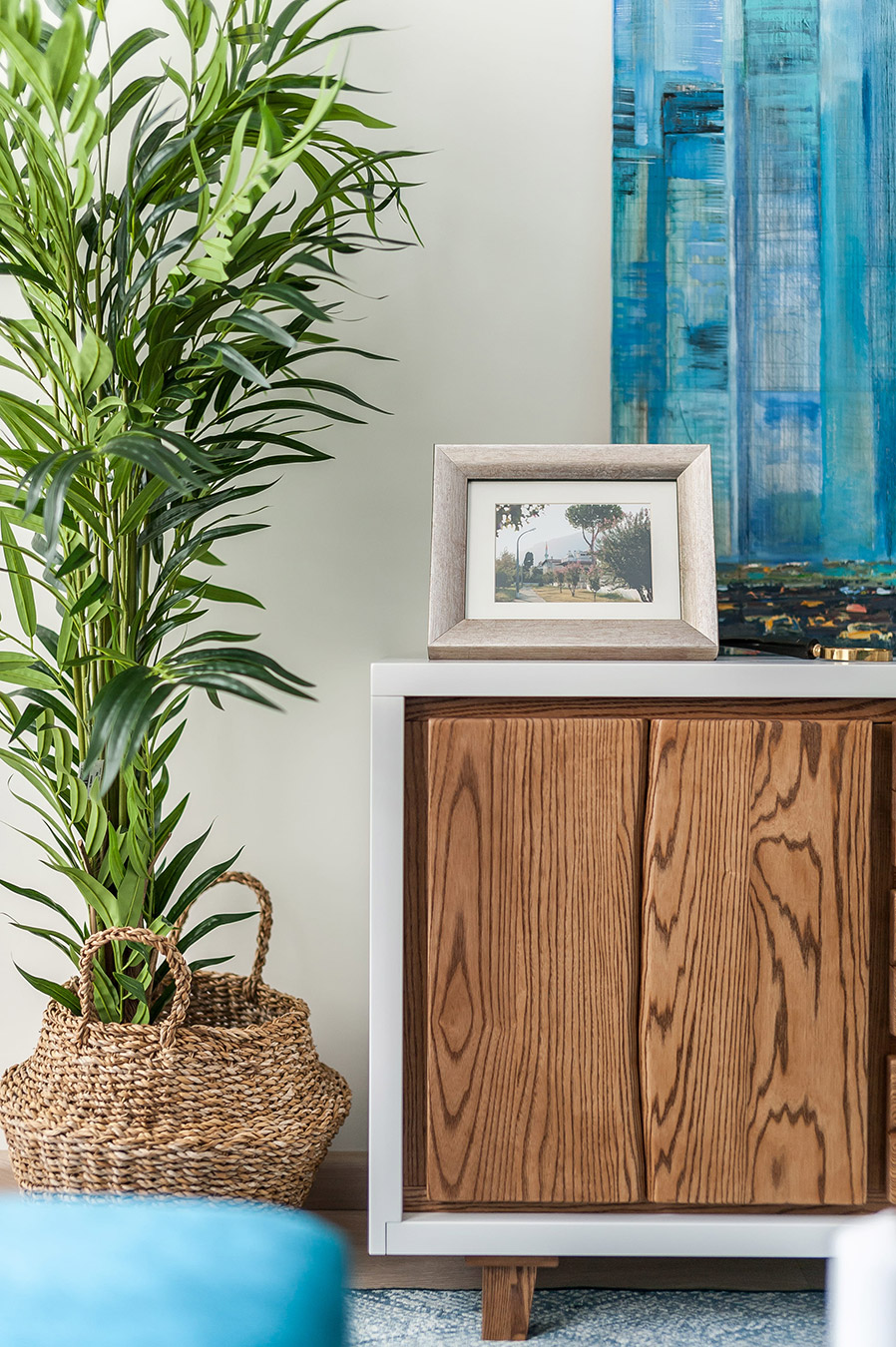 В гостиной нашли свое место две работы Петра Серебровского «Москва-сити» и «Ил», а в зоне холла — две философские работы китайских фотографов. Масляные полотна Петра Серебровского отлично дополнили цветовую палитру интерьера и стали его финальным штрихом.