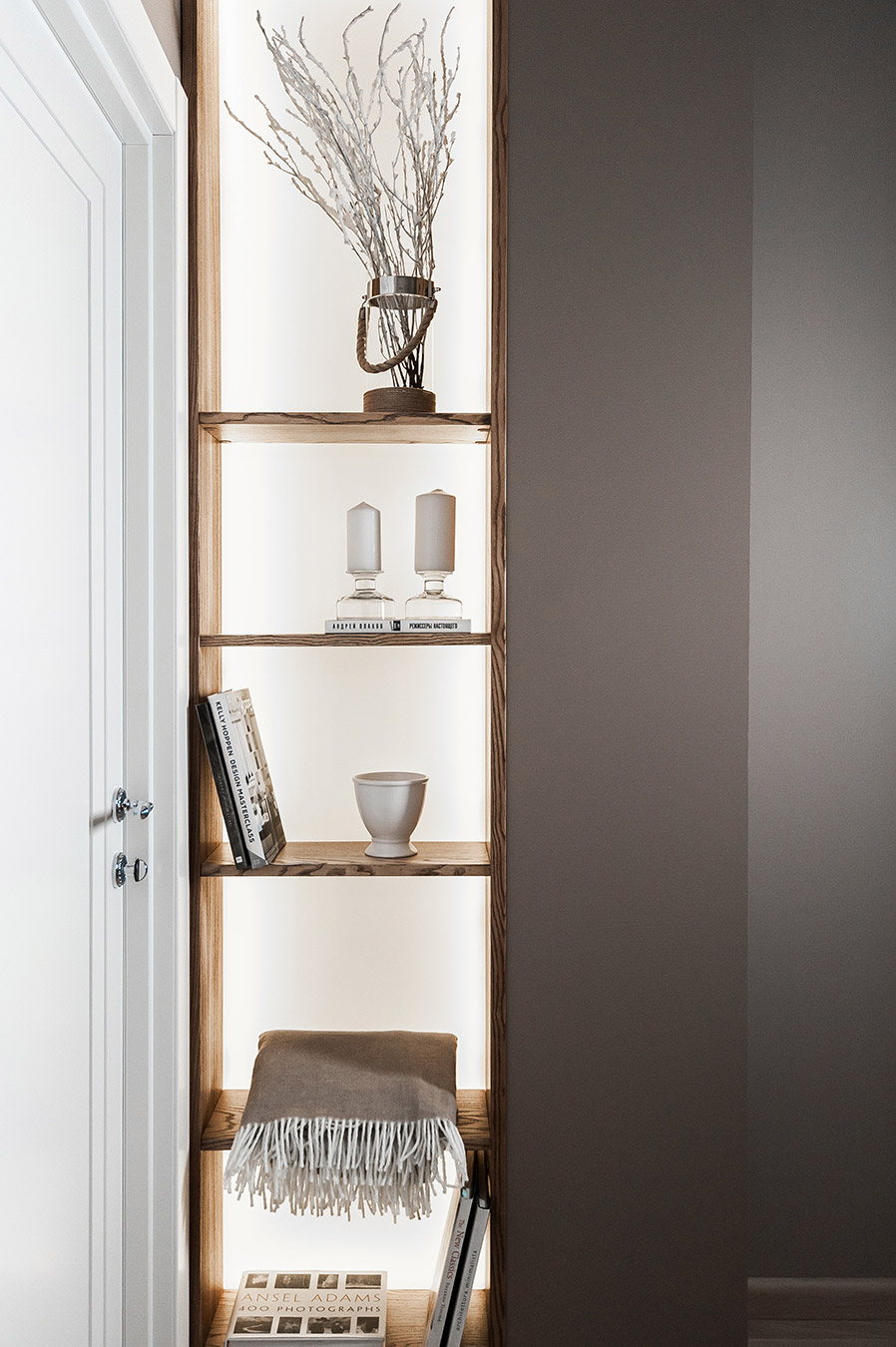 Владельцы квартиры — молодая пара — любят отдыхать и путешествовать, кроме того, они занимаются спортом и ведут очень активный и позитивный образ жизни. Авторы проекта стремились отразить индивидуальность заказчиков в интерьере.