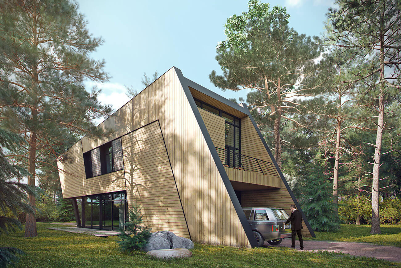 Компактный загородный дом динамичной формы своим энергичным образом напоминает скульптурную композицию.