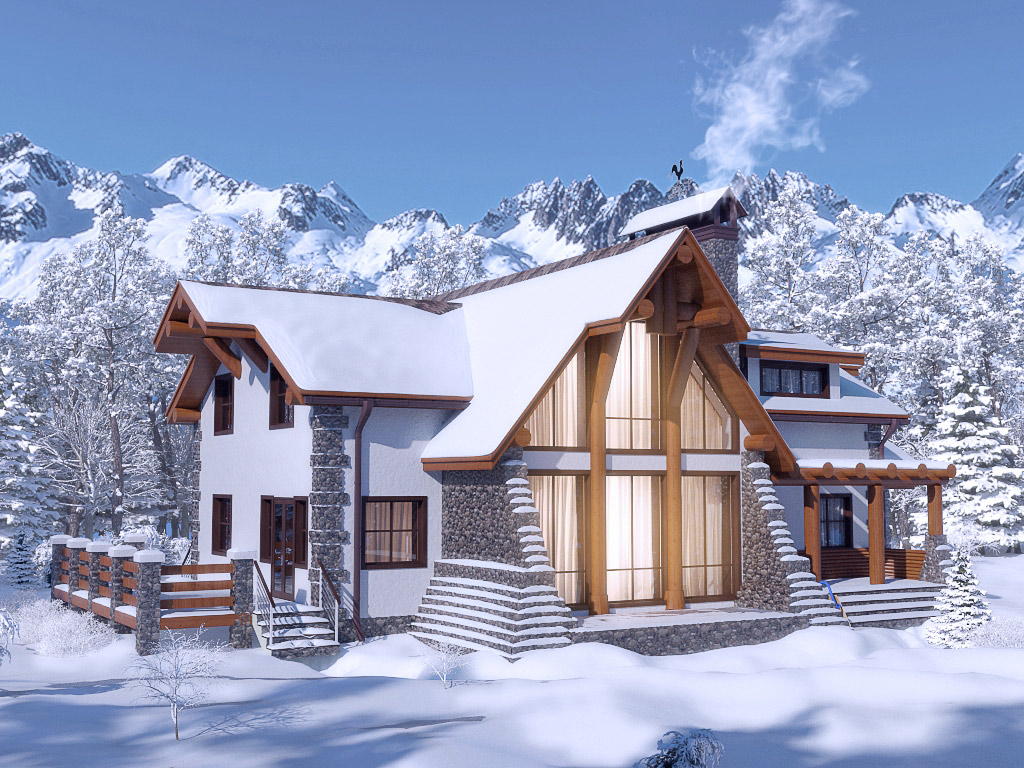 В конструктивном плане стены выполнены из керамического блока, наружные фасады отделаны декоративной штукатуркой и элементами деревянных конструкций. Для открытого пространства предусмотрено панорамное остекление с энергосберегающей системой.