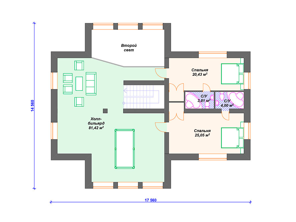 Габаритные размеры дома в осях строения — 12,76 м х 24 м