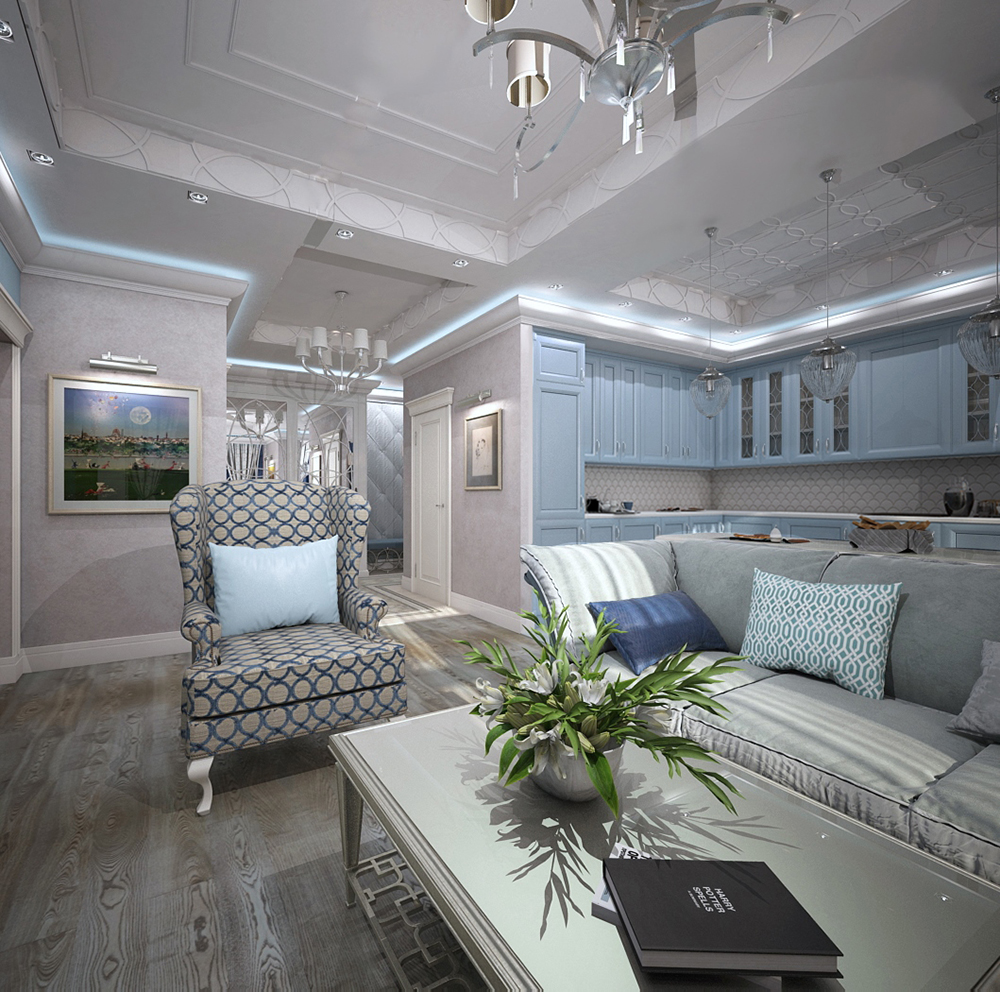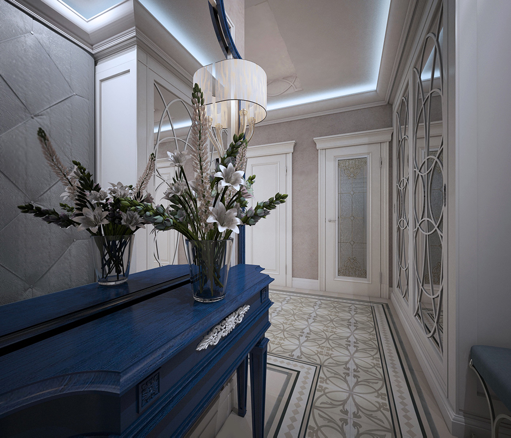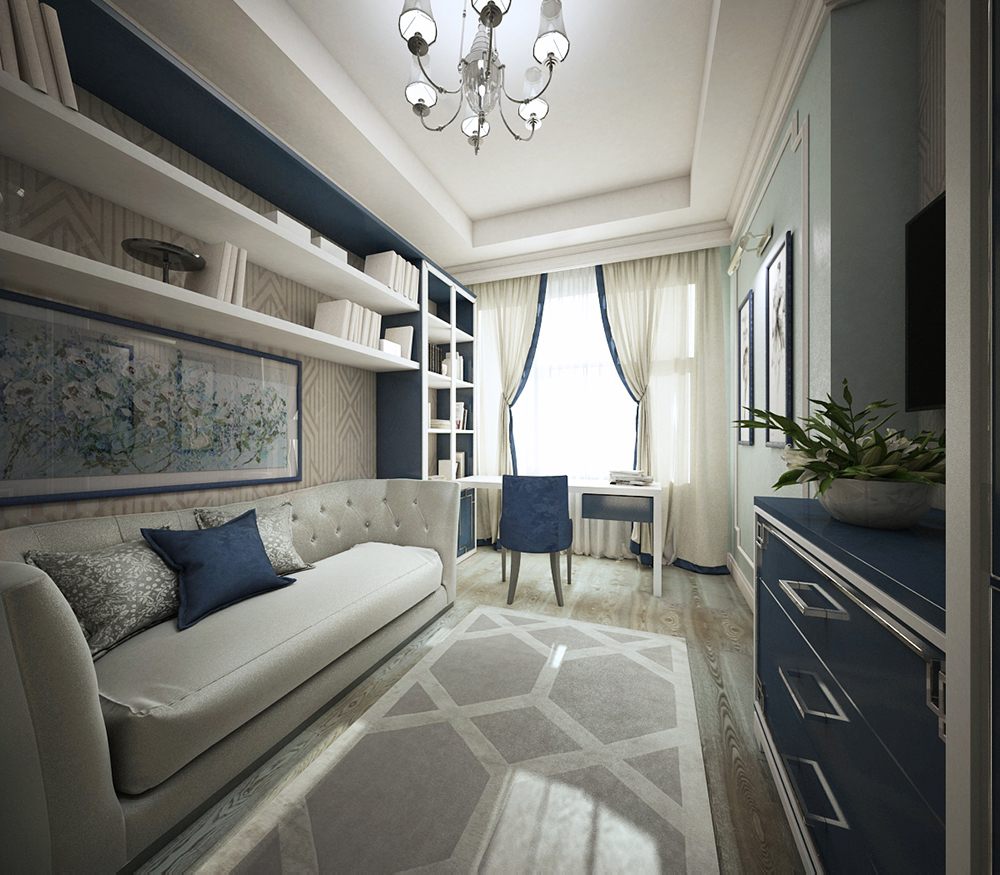 Рамки в обстановке задаются строгими классическими формами. Центральное место в апартаментах отводится кабинету, который зачастую выполняет функции приёмной. Гостиная с лёгкостью превращается в столовую, пусть и лишь на время, отведанное для приёма пищи. И отделка, и убранство комнат оформлены в пастельные тона, дабы не перегружать внимание жильцов, поддерживая размеренность и лёгкость мысли.