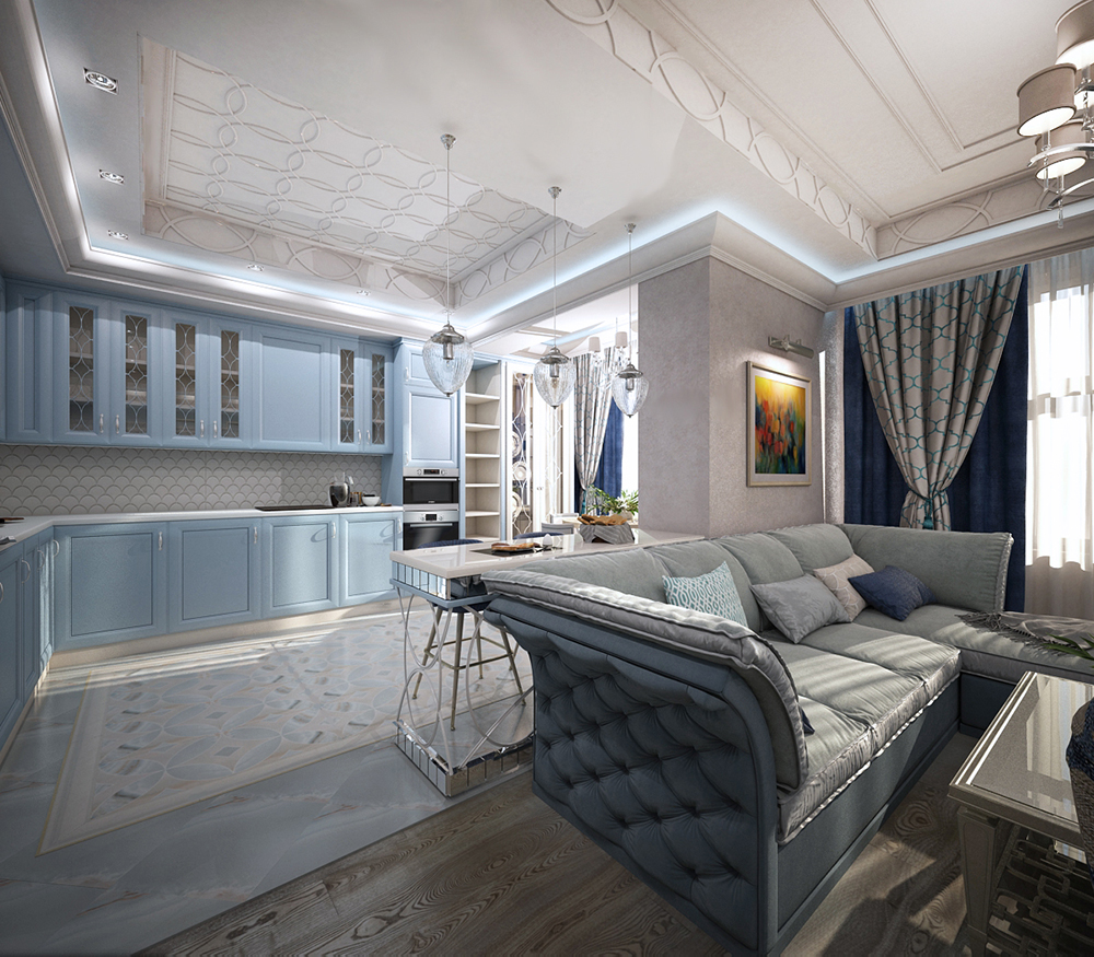 Интерьер выдержан в духе «новой Англии», гармонично заполняя апартаменты североамериканским бытом премиального сегмента. Эта обстановка идеальна для людей, знающих не понаслышке, что такое жизненный успех и умеющих достигать его с помощью усердного и честного труда.