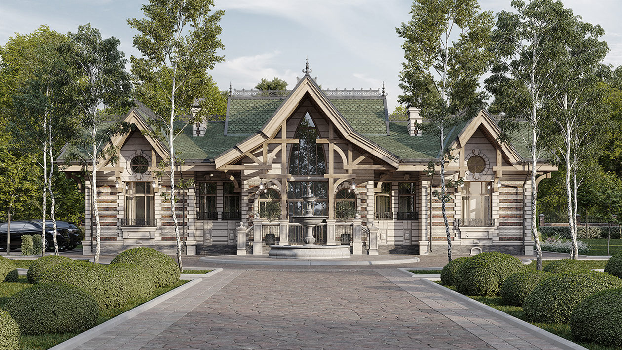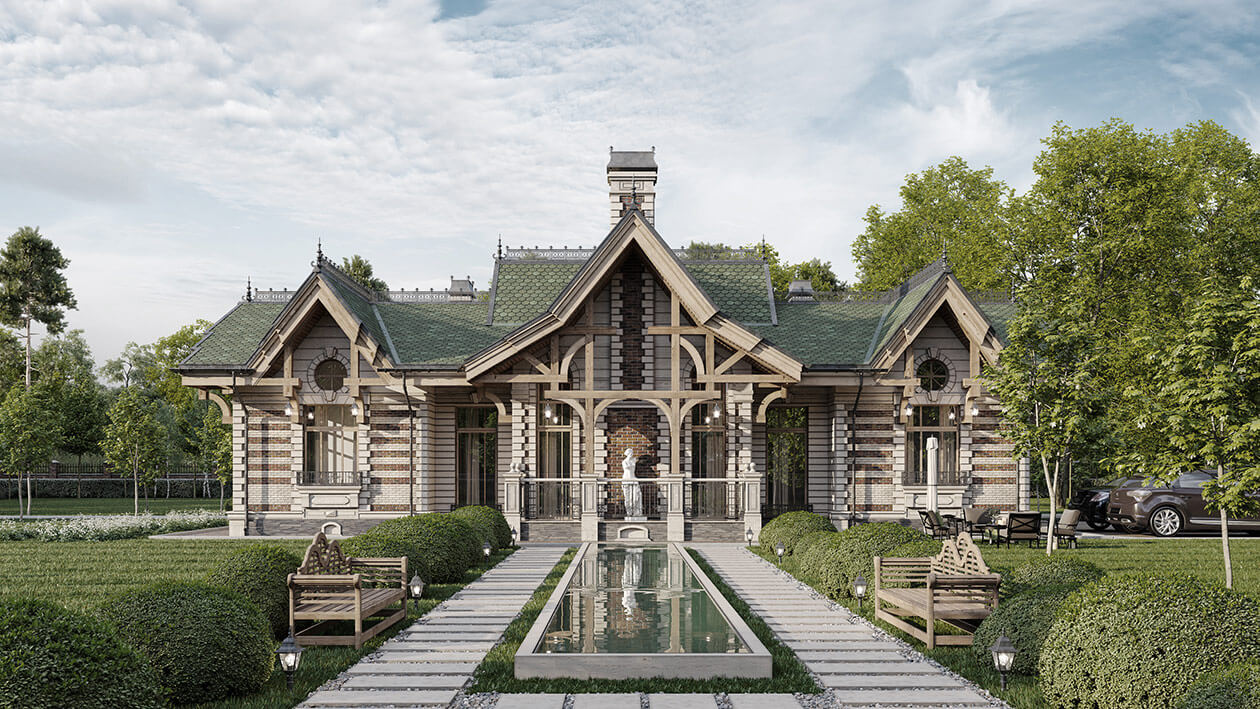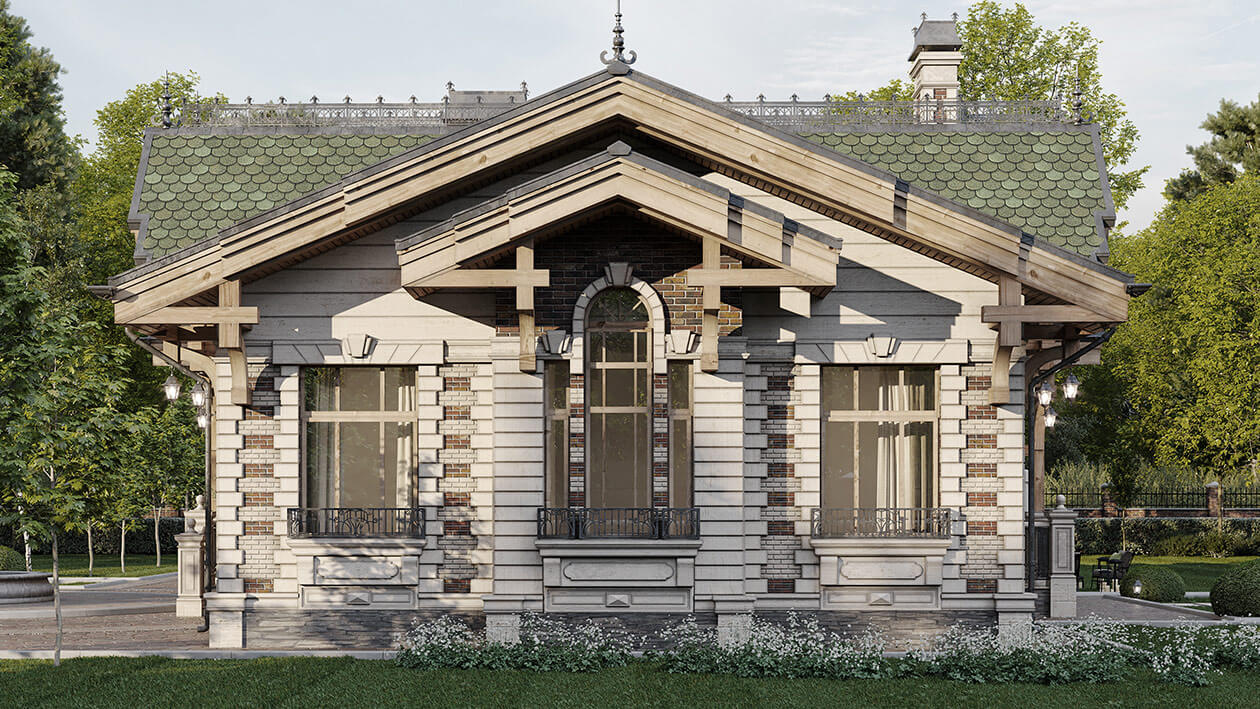 За основную философскую и стилистическую идею образа дома архитектором проанализирован исторический пласт проектов малоэтажных домов в стиле английского модерна, голландского вахверка и проектов домов в викторианском стиле. В период модерна происходило переосмысление старых художественных форм и приемов, сближение и слияние различных видов и жанров искусства.