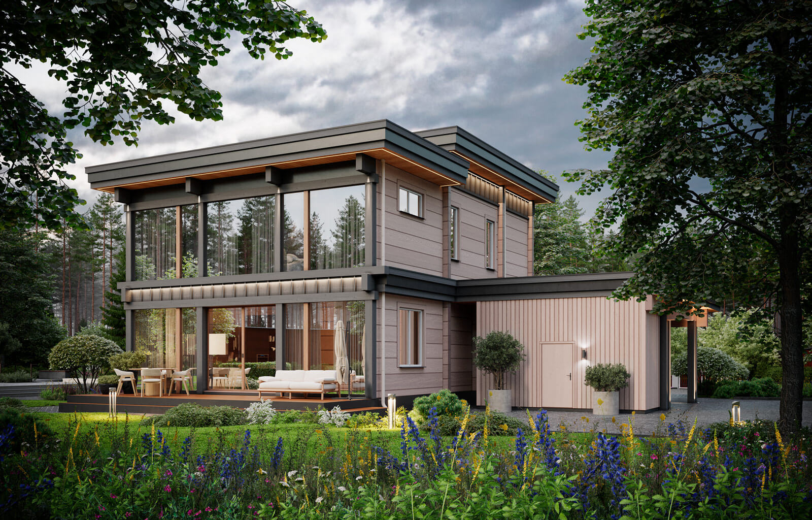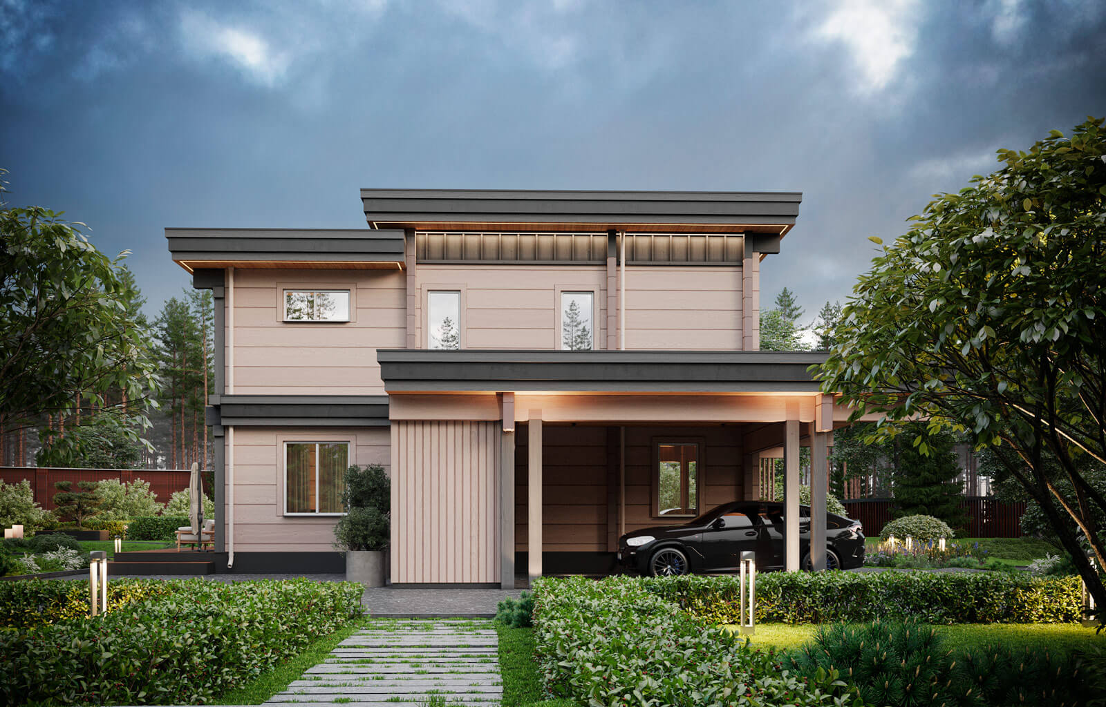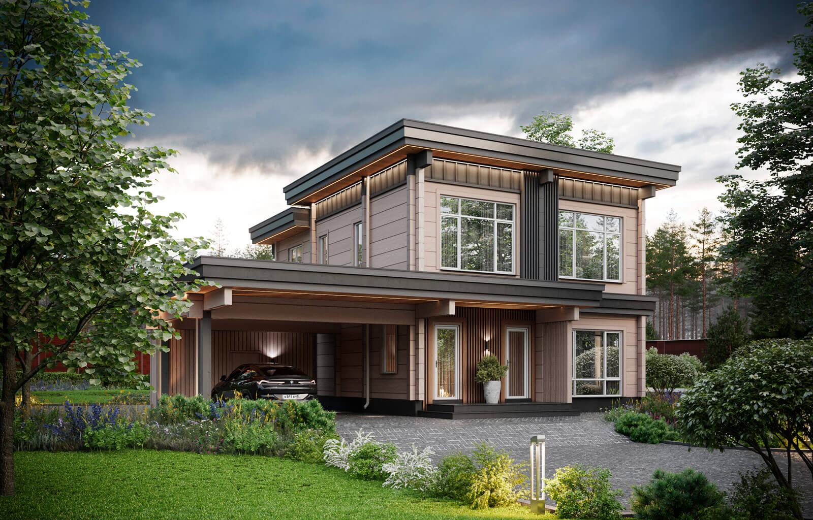 Проект способен воплотить мечты о современной загородной жизни, в пространстве, которое дышит, излучает тепло и приглашает в объятия природы.