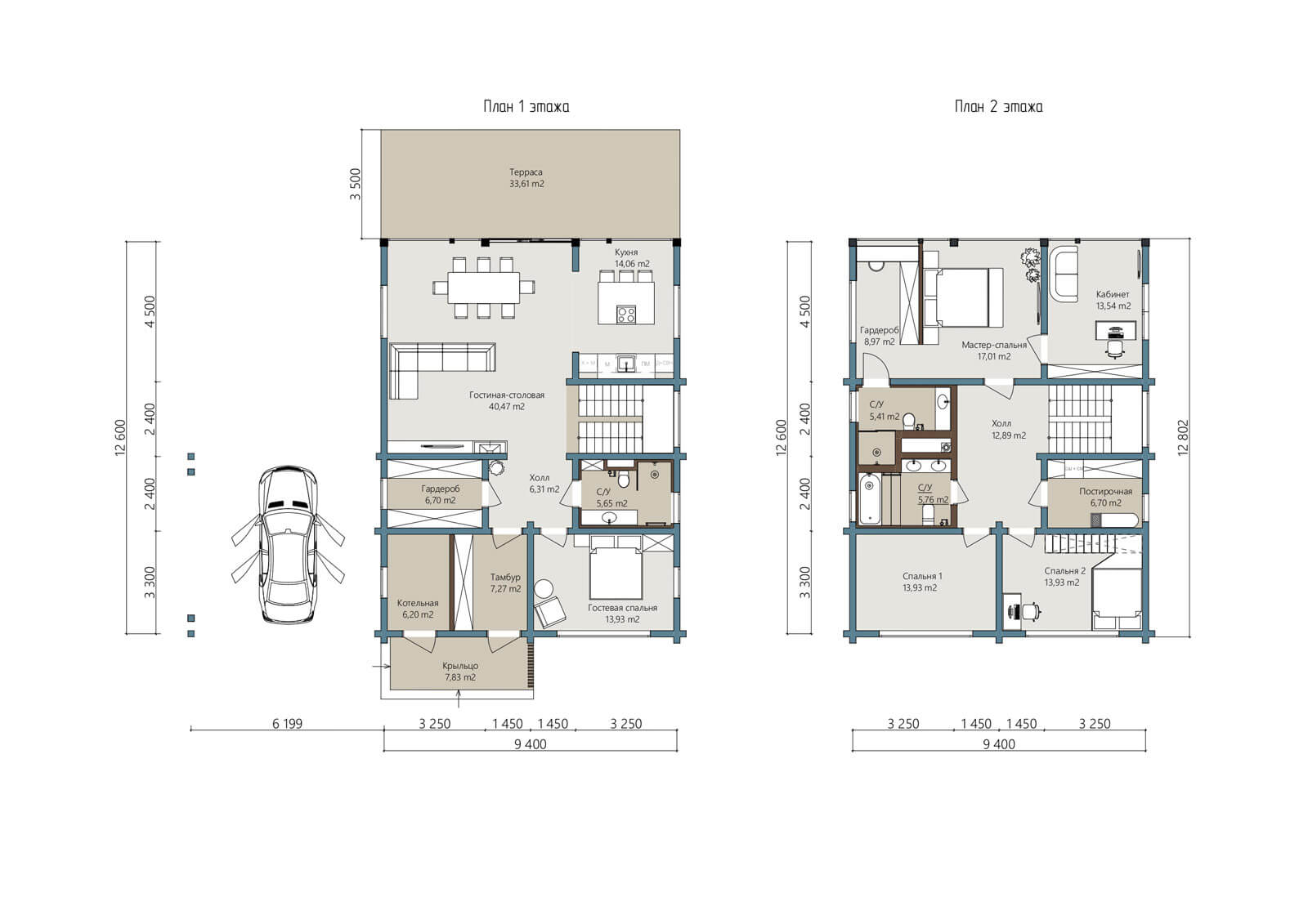 На втором этаже спроектирована настоящая мастер – спальня о которой мечтают многие: панорамные виды, отдельная гардеробная, большой су и доступ в рабочий кабинет.
