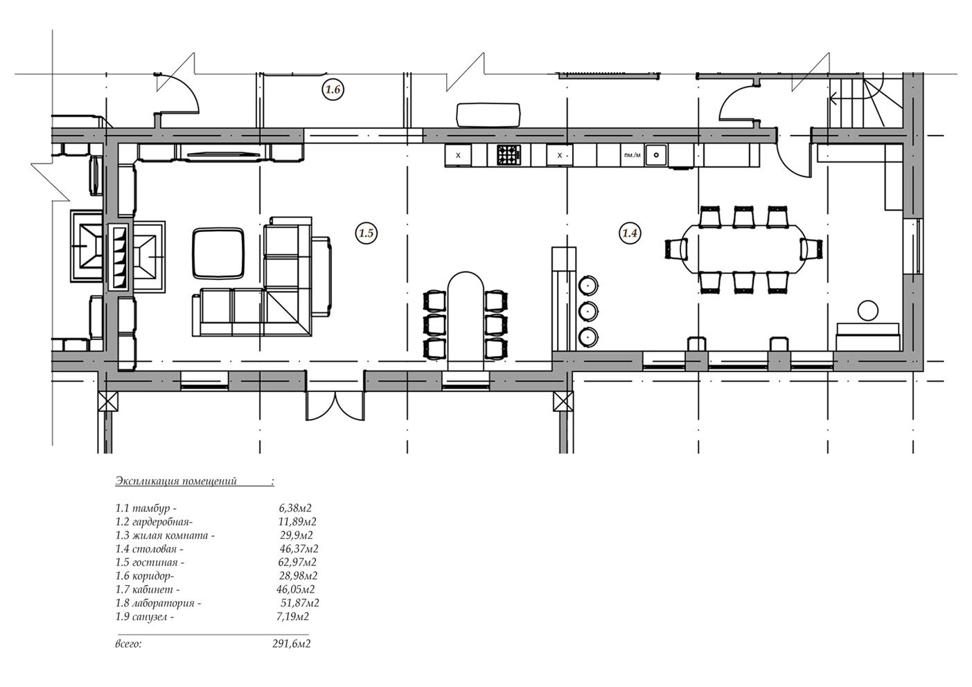 Именно так созданы интерьеры в этом особняке площадью 630 м2, предназначенном для большой семьи.