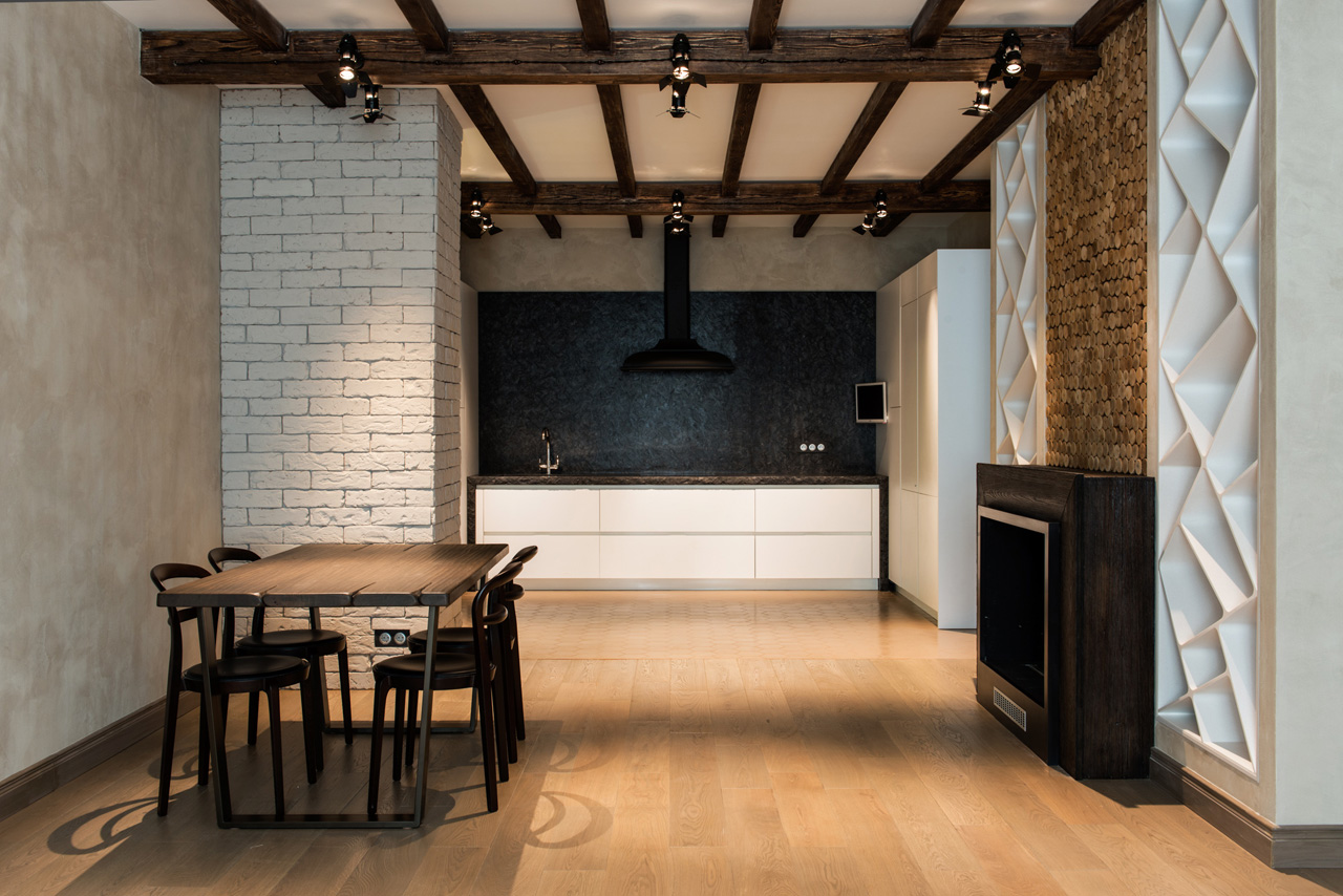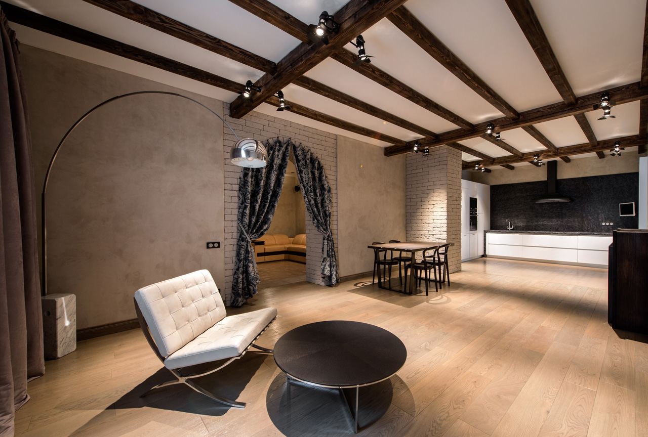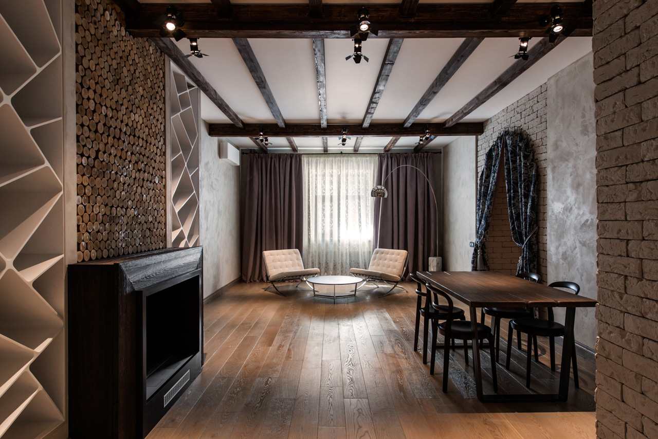 Проект был выполнен после окончания обучения в Италии «Воркшоп по разработке, проектированию и дизайну» в Politecnico di Milano, поэтому в нем много ноток европейского минимализма, лофта с применением в отделке кирпича, камня, натурального дерева, штукатурки под бетон, прожекторов, шикарного текстиля...