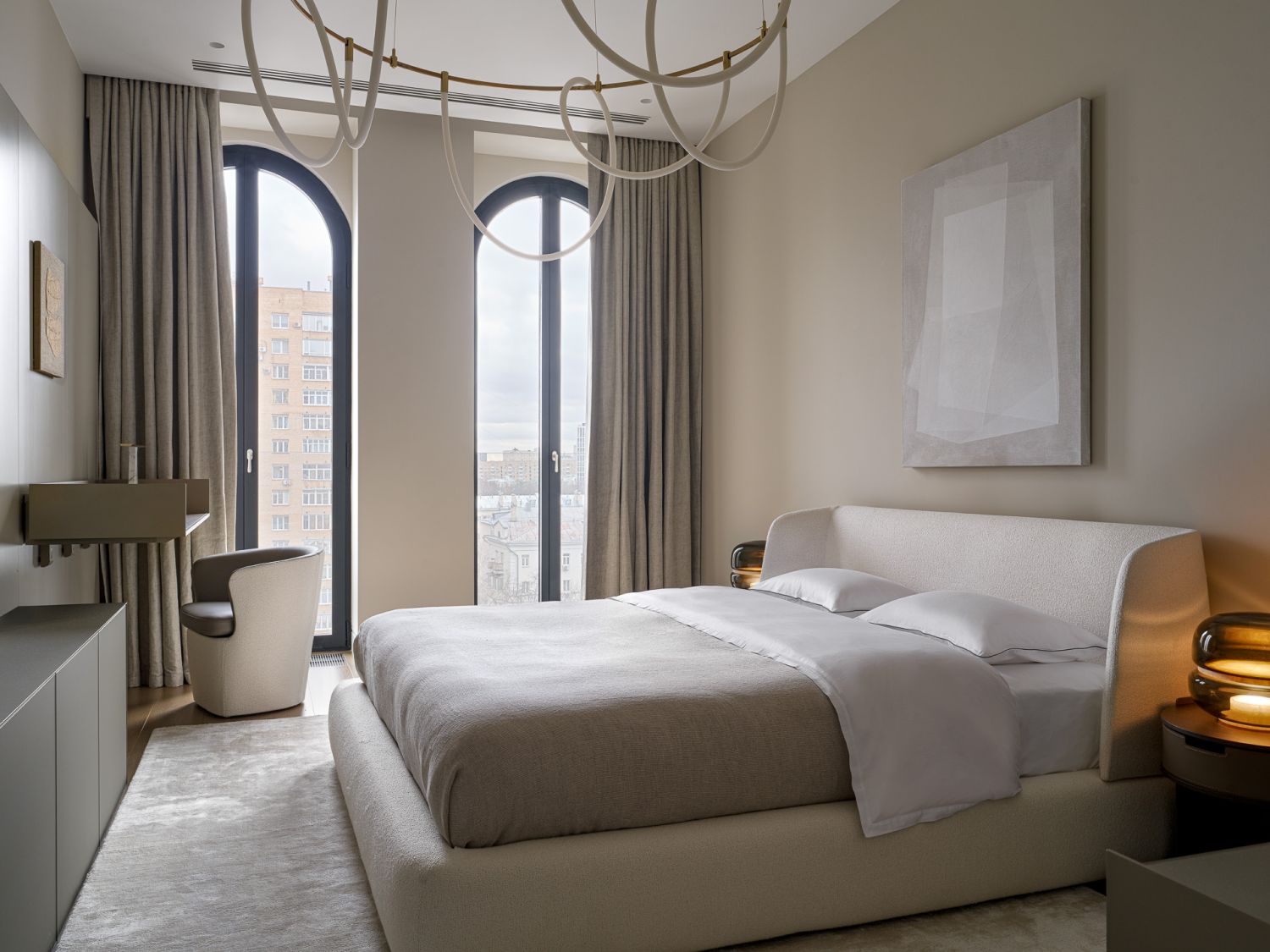 Внешний облик жилого комплекса вдохновлен архитектурой Венеции. Это и стало отправной точкой для переработки уже готового типового интерьера, поиска его уникального звучания, гармонии красоты и уюта. Классика венецианских интерьеров – свет, золото, камень, текстиль, предметы искусства – сочетается здесь с актуальными тенденциями в декоре. Поддерживает стилистику теплая бежевая палитра, перемежающаяся с яркими цветовыми акцентами.