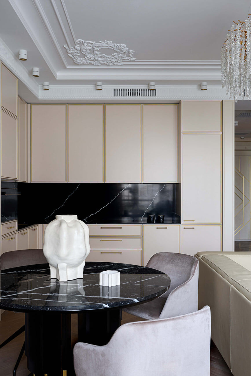Диван Gamma, Италия, Стулья в гостиной Calligaris, Италия, cтол журнальный в гостиной Eichholtz, Нидерланды, Кухня Giulia Novars, Россия