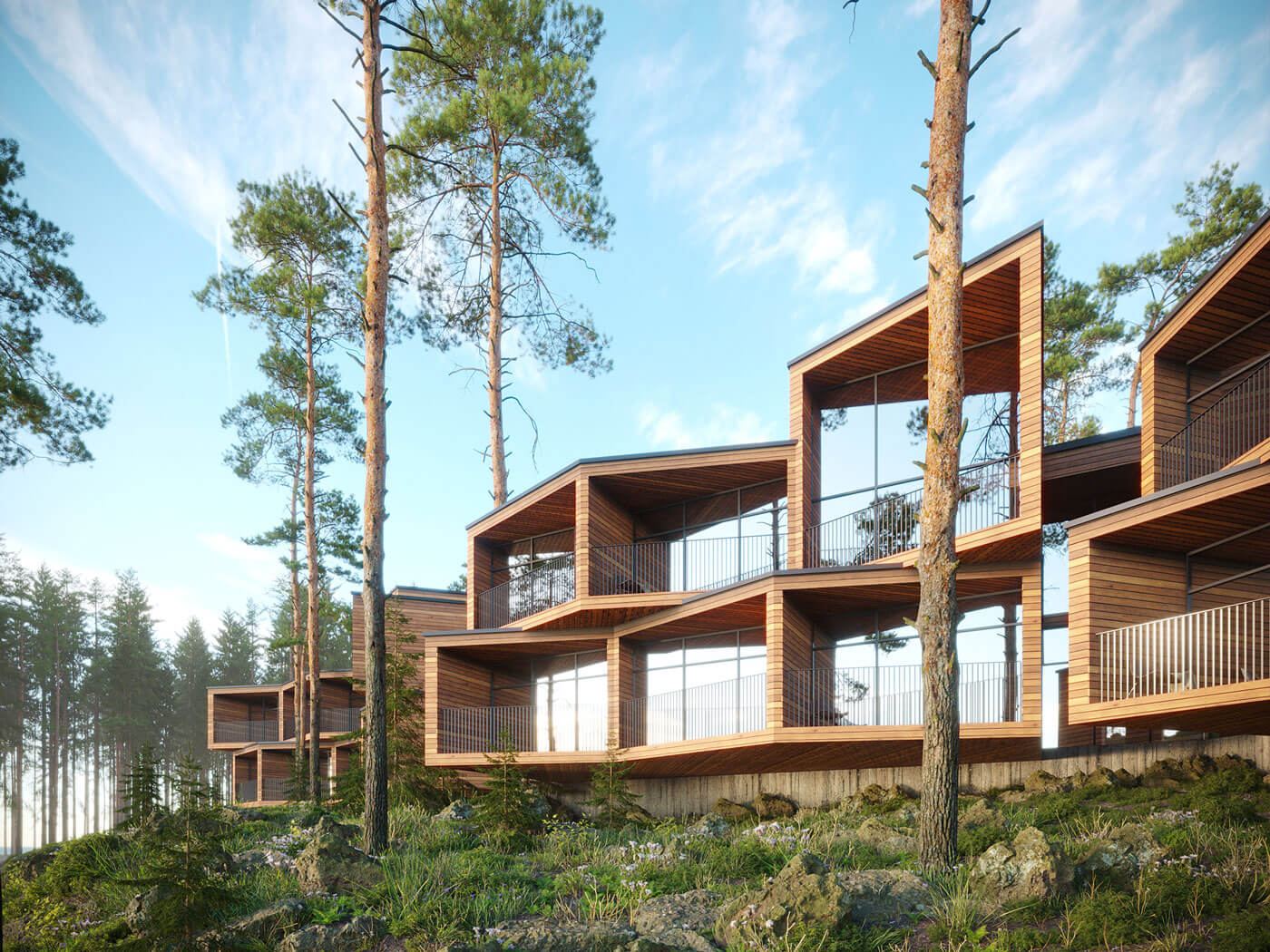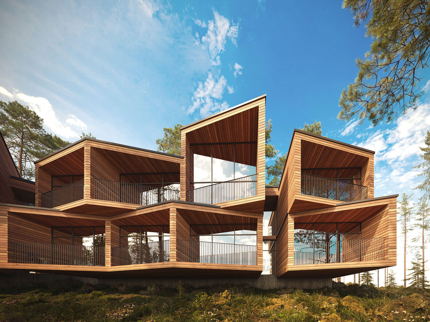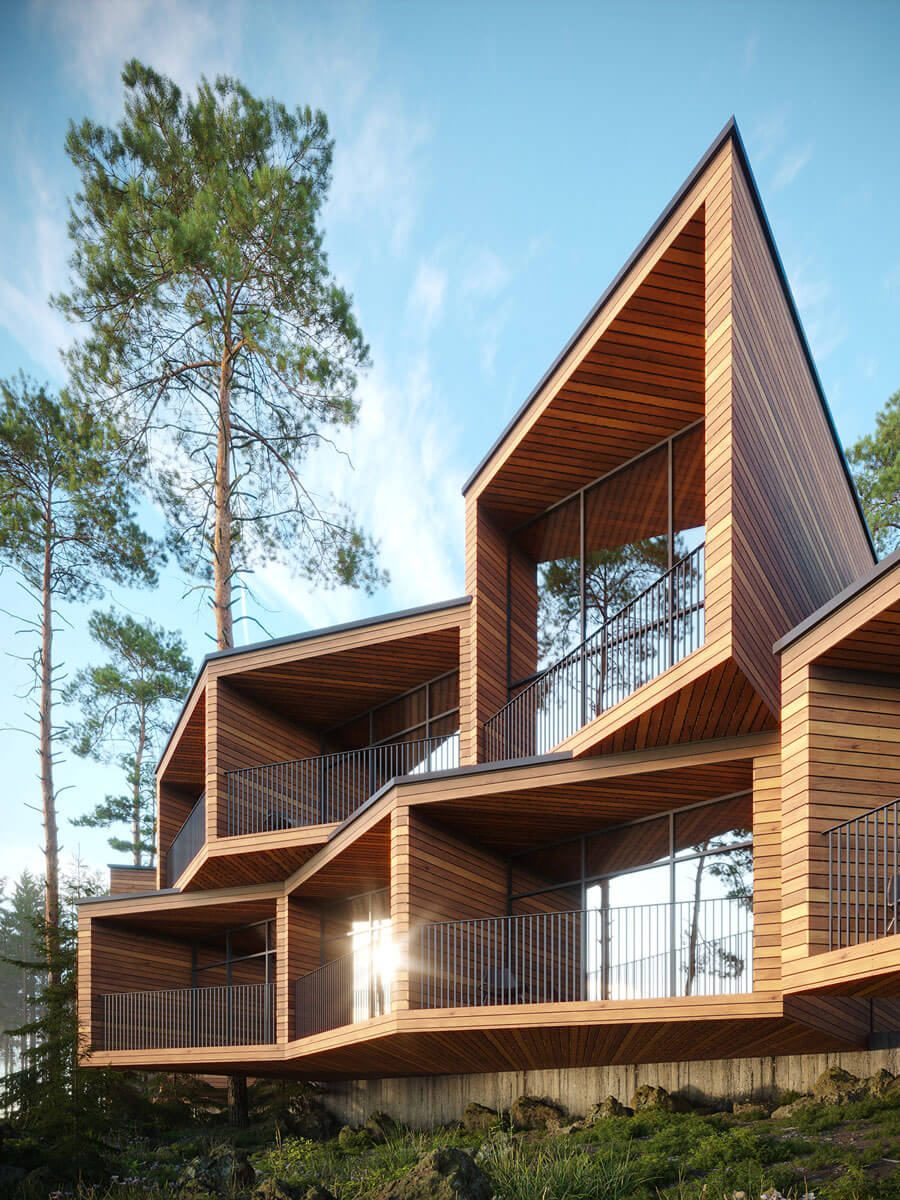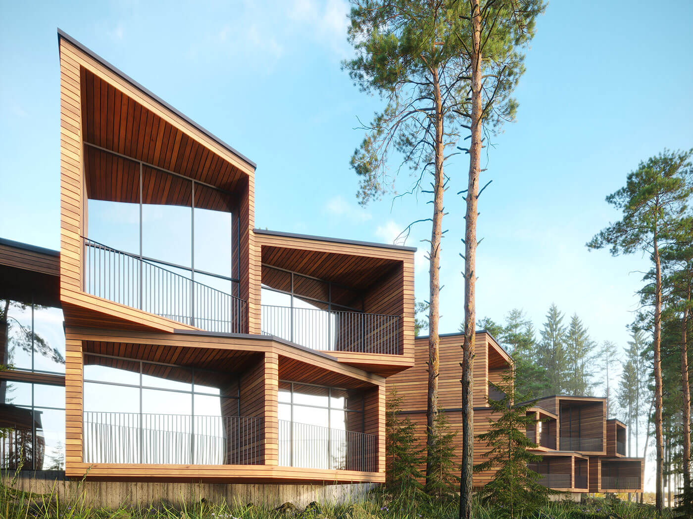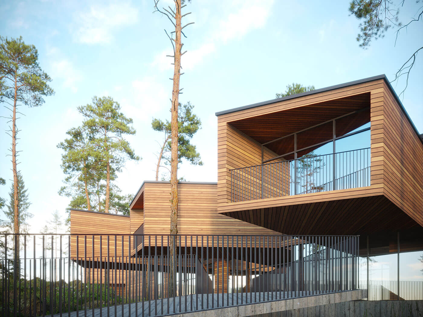 Проект планируется возвести по каркасной технологии. В качестве силового каркаса здания используется строганная доска камерной сушки. В качестве заполнения стен – минераловатные плиты. Фасад облицован деревянной рейкой типа планкен.