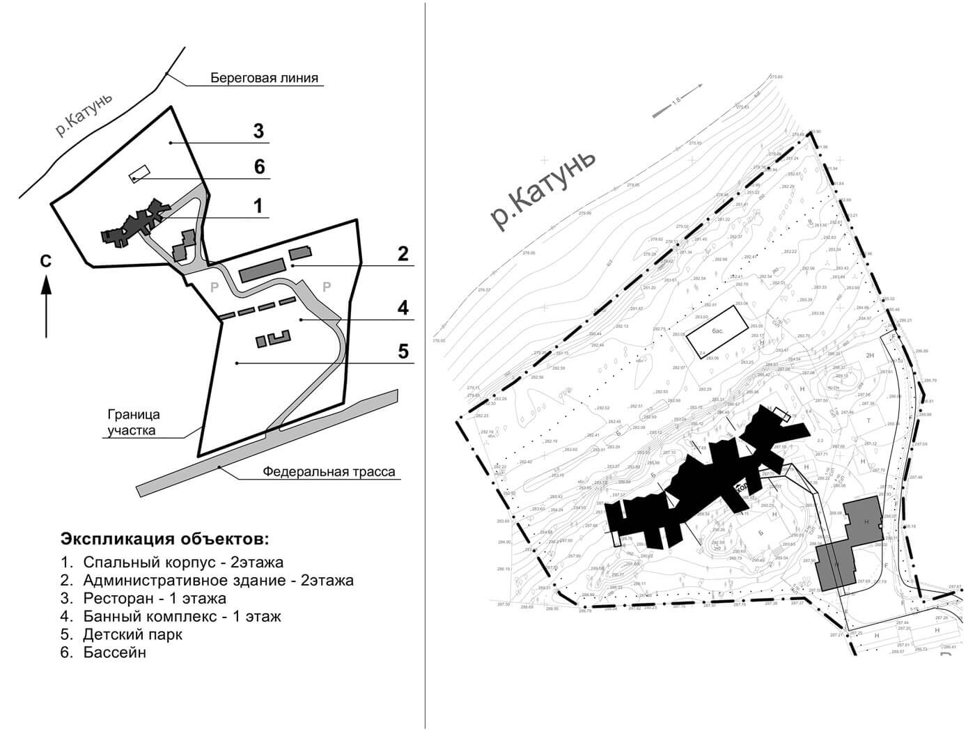 На земельном участке имеются ветхие, морально устаревшие строения для проживания отдыхающих. Проектом предлагается произвести их демонтаж, а на их месте расположить современный объект, соответствующий сегодняшним требованиям безопасности, экологичности и комфорта.