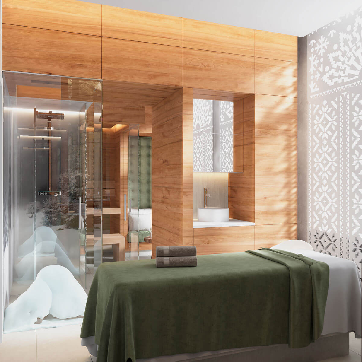 В спа представлены три уникальных спа-сьюта, каждый из которых несет свою функциональную задачу и уникальный интерьер.
