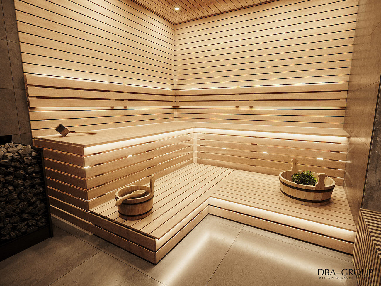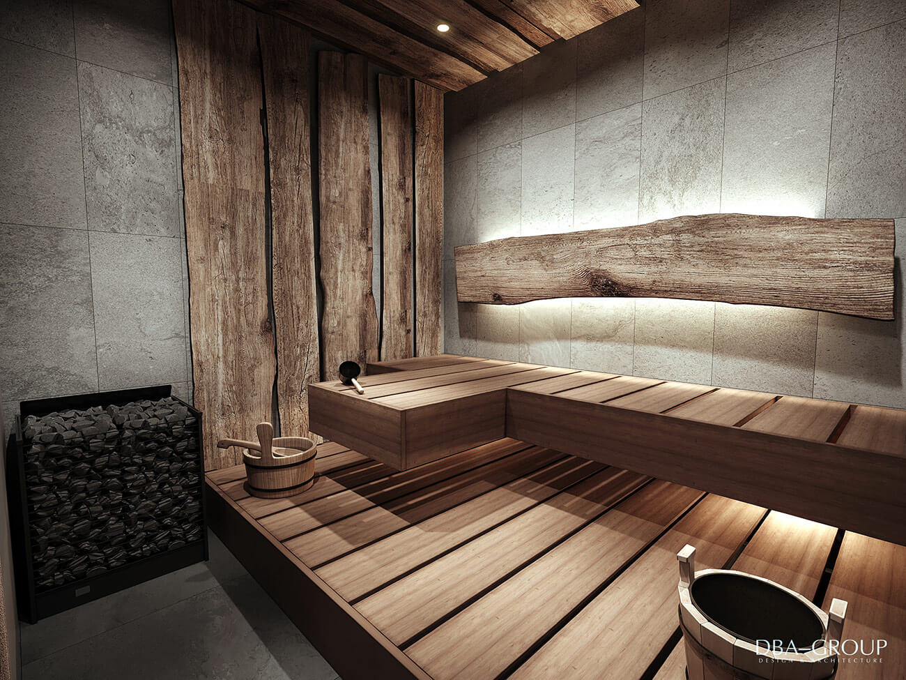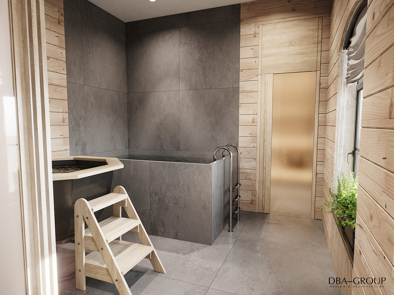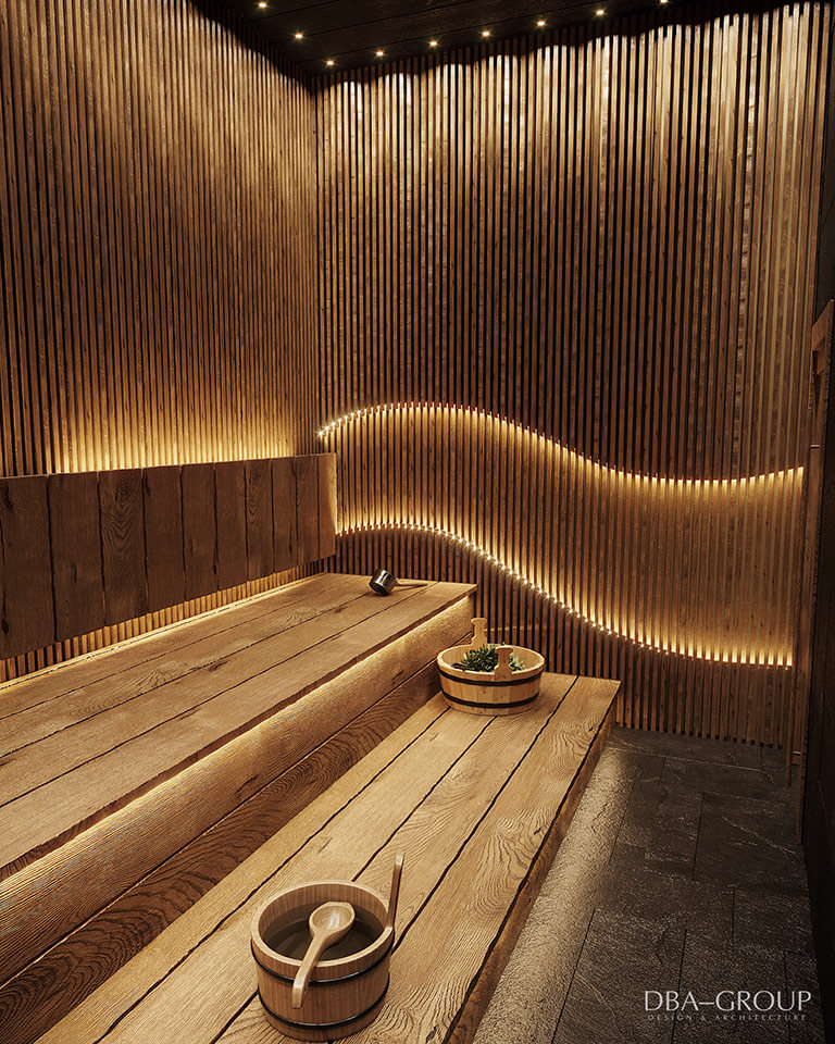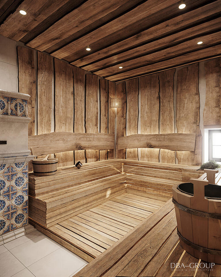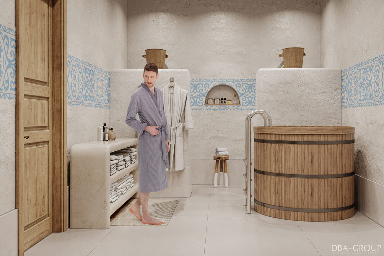 В интерьере основного здания с мужским и женским разрядами и спа-зоной читается концепция актуального минимализма: спокойные оттенки, лофтовые кирпичные стены, натуральные фактуры. Концепция основана на интеллигентном приспособлении исторического здания под современные функции и интеграцию различных банных технологий и элементов.