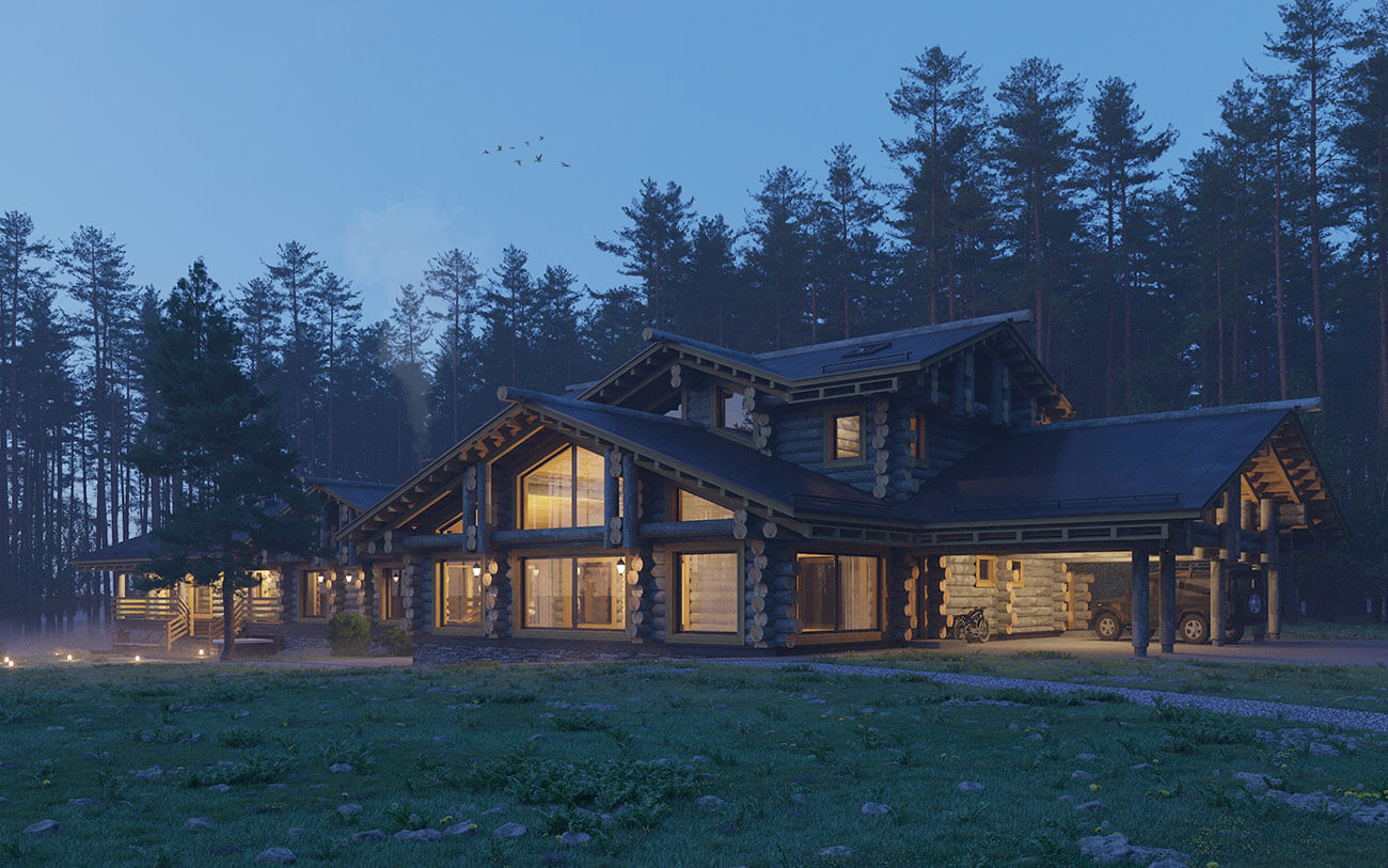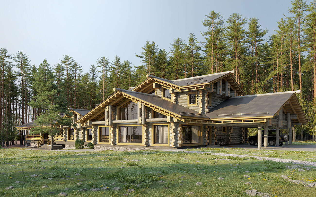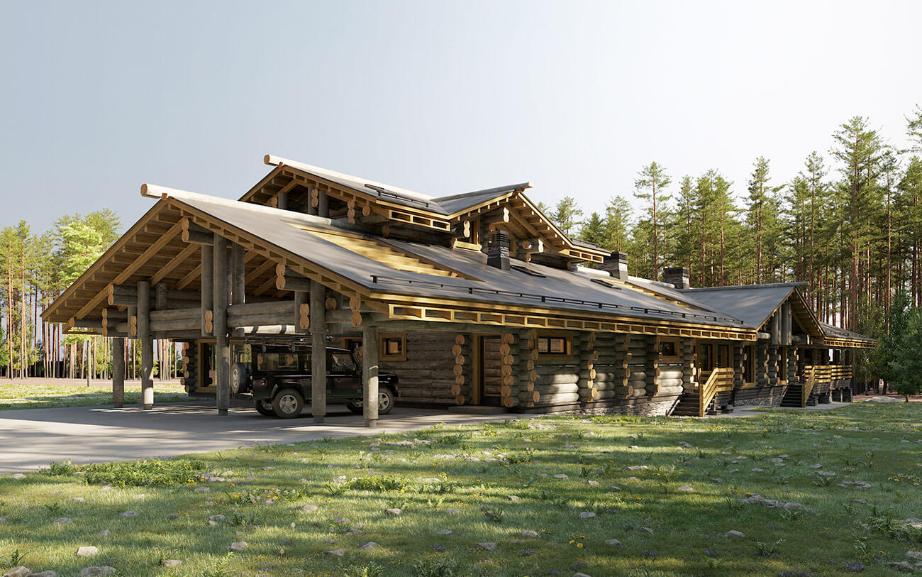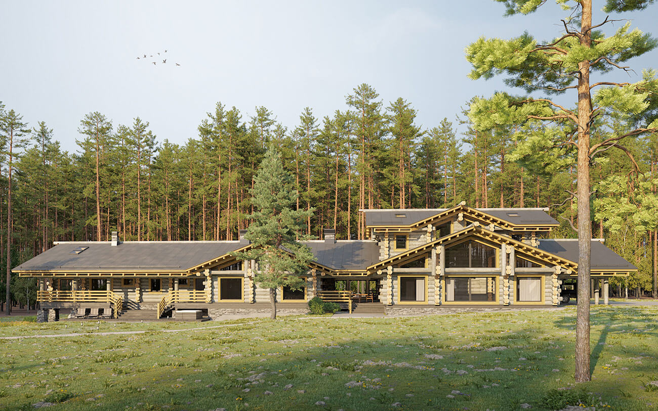Банно-спортивный комплекс запроектирован для круглогодичного использования в деревне Новотоксово Ленинградской области на участке с уклоном в сторону озера. Банно-спортивный комплекс в большей части одноэтажный, в сочетании с небольшой двухэтажной частью; с совмещенной скатной кровлей, без подвала. Архитектурное решение образа банно-спортивного комплекса — объемно-пространственная композиция, горизонтальной направленности, подчеркнутая линиями кровель, архитектурными элементами и деталями, сочетающая современное видение с традициями деревянной архитектуры. Широкие, относительно пологие крыши (21°) объединяют и зрительно и фактически занижают объем и усиливают его связь с ландшафтом. Под карнизами, под террасами и галереями предусмотреть декоративную подсветку в темное время суток.