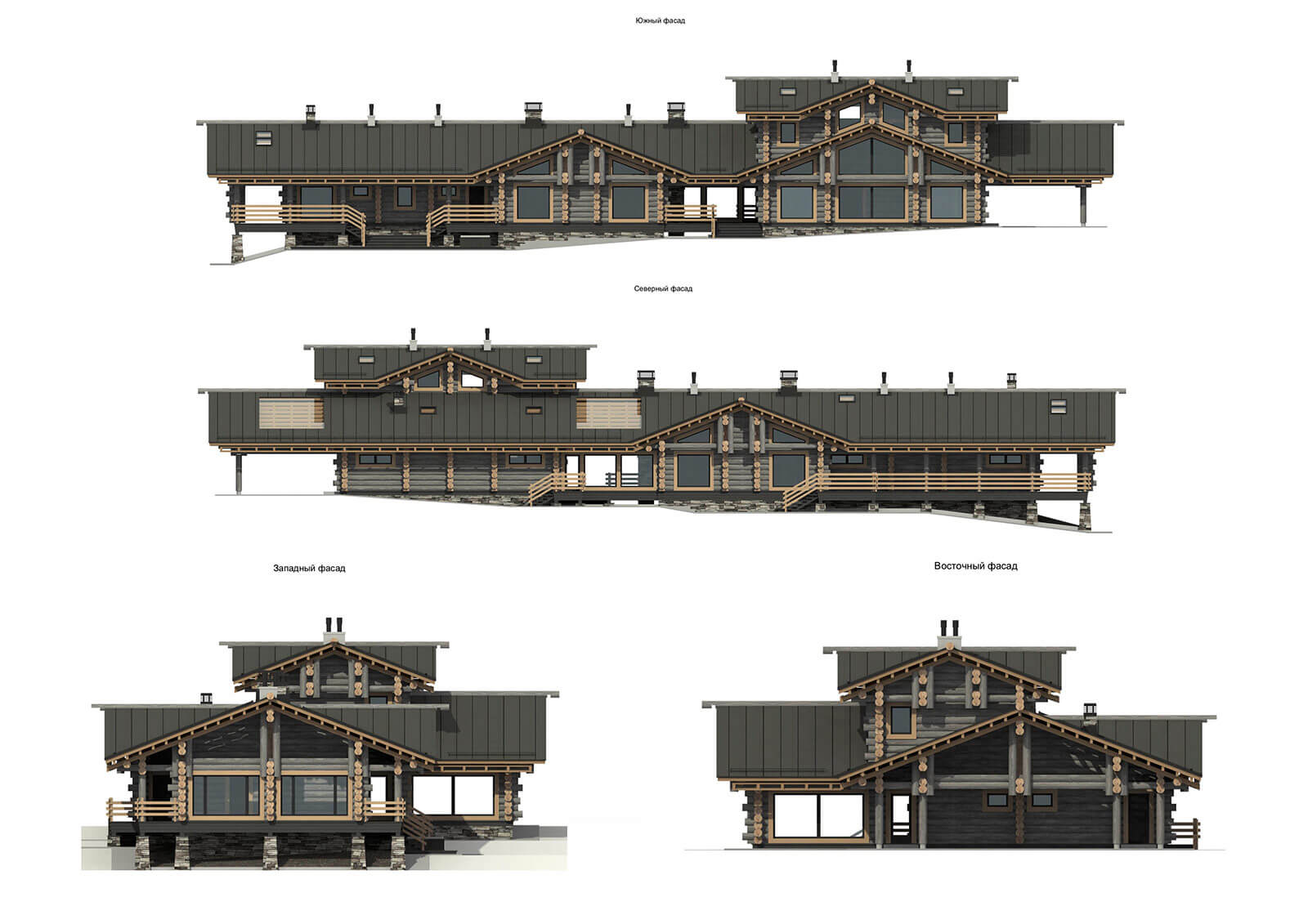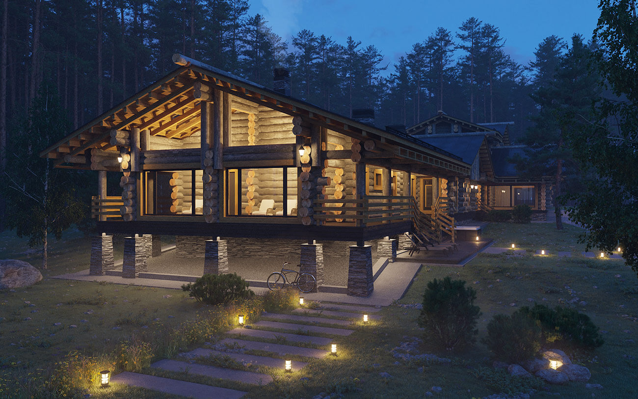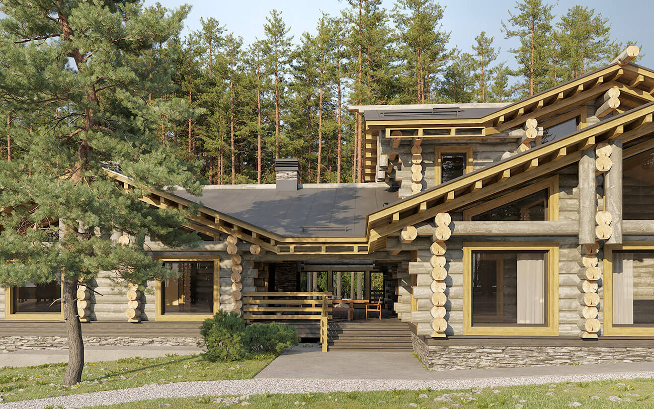 Банно-спортивный комплекс запроектирован для круглогодичного использования в деревне Новотоксово Ленинградской области на участке с уклоном в сторону озера. Банно-спортивный комплекс в большей части одноэтажный, в сочетании с небольшой двухэтажной частью; с совмещенной скатной кровлей, без подвала. Архитектурное решение образа банно-спортивного комплекса — объемно-пространственная композиция, горизонтальной направленности, подчеркнутая линиями кровель, архитектурными элементами и деталями, сочетающая современное видение с традициями деревянной архитектуры. Широкие, относительно пологие крыши (21°) объединяют и зрительно и фактически занижают объем и усиливают его связь с ландшафтом. Под карнизами, под террасами и галереями предусмотреть декоративную подсветку в темное время суток.