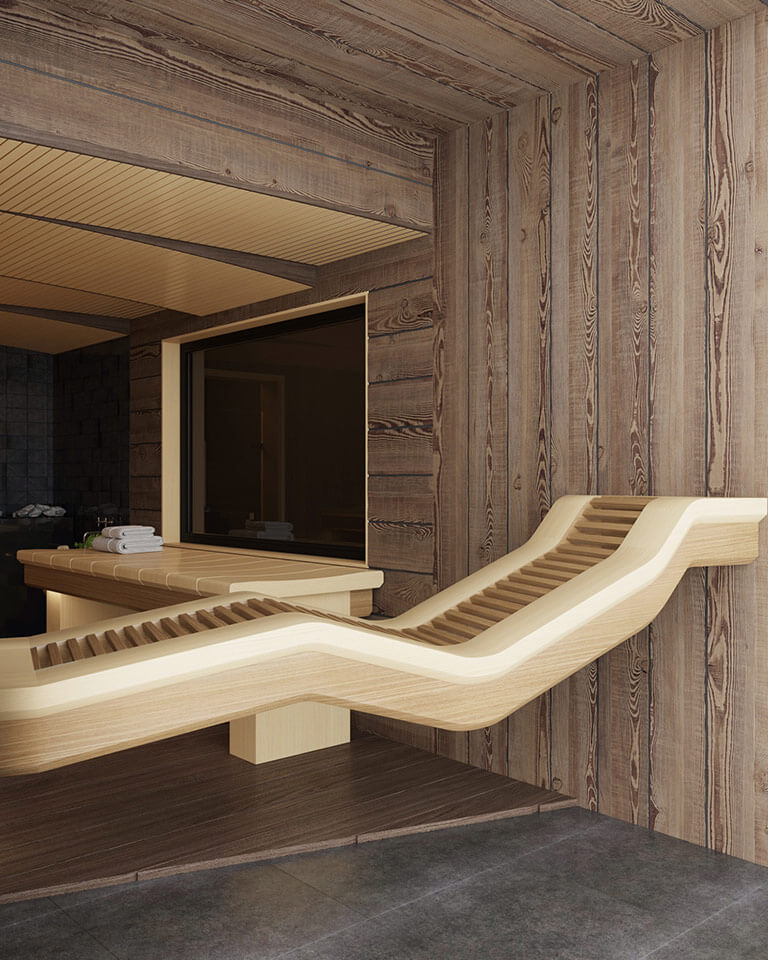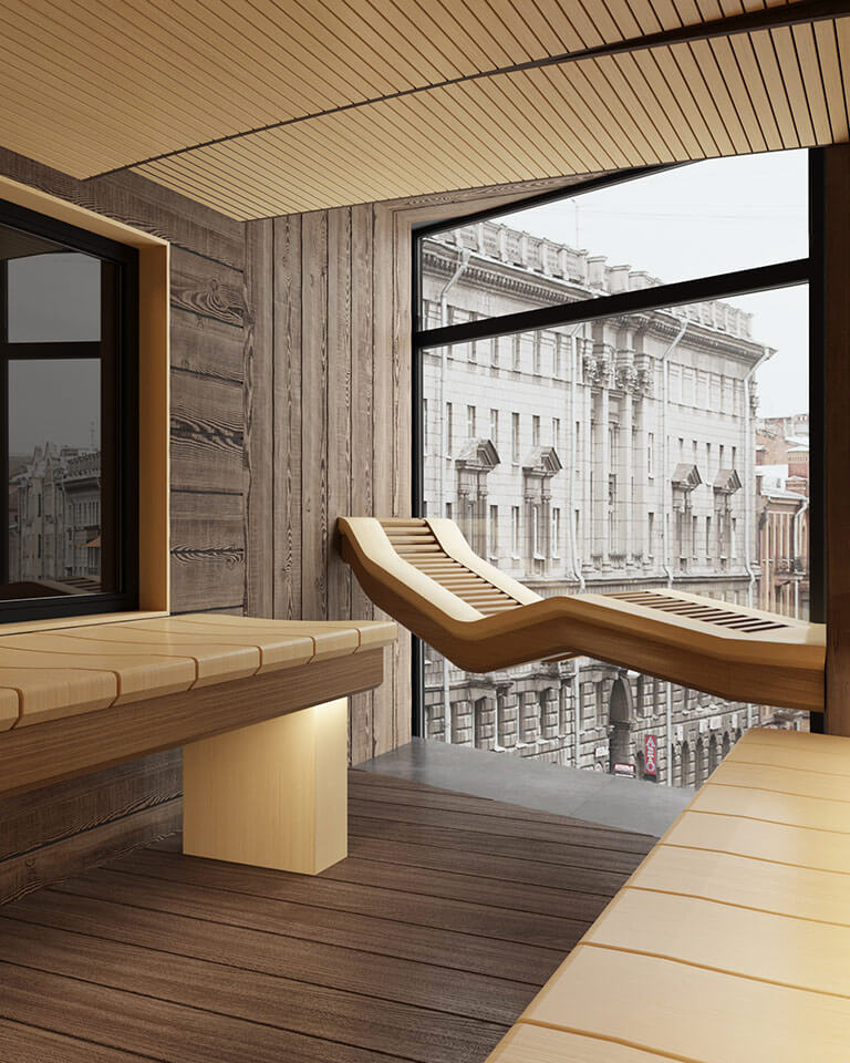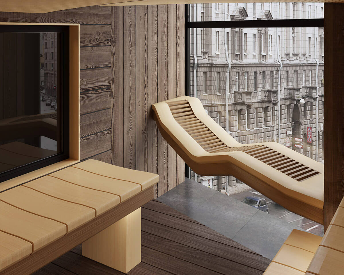 Любопытным моментом является анатомический лежак перед панорамным стеклом.