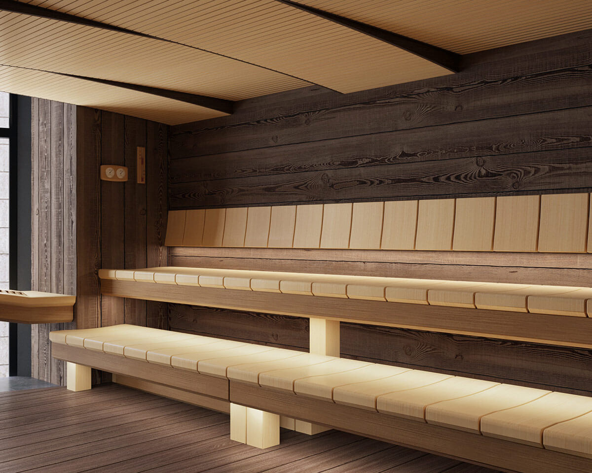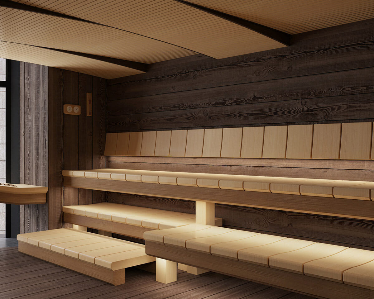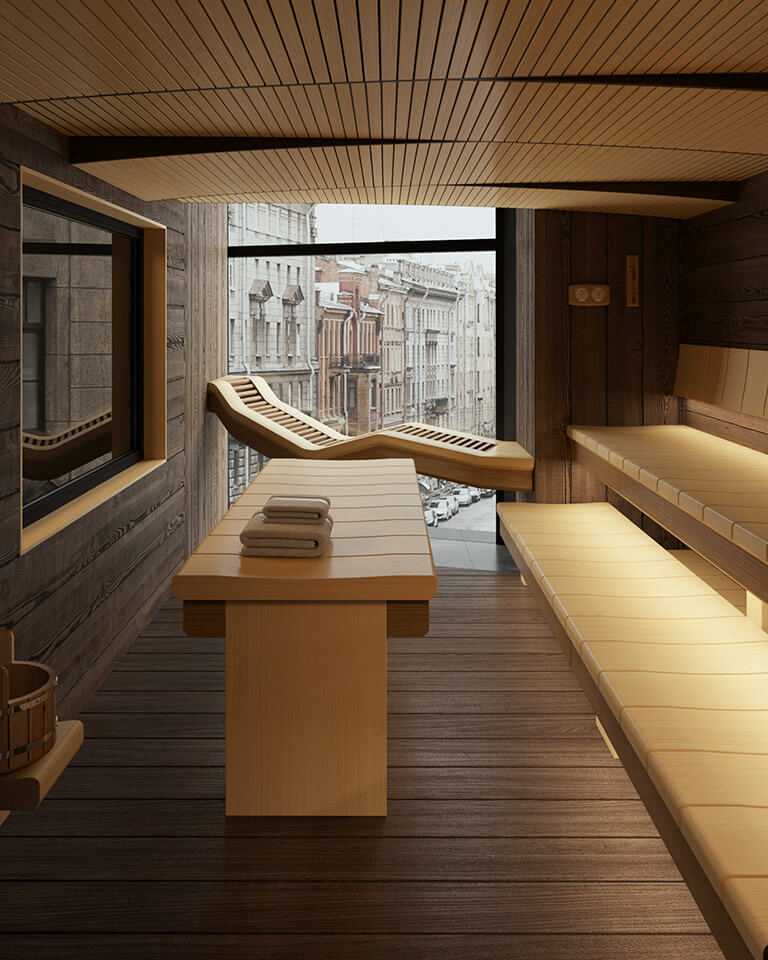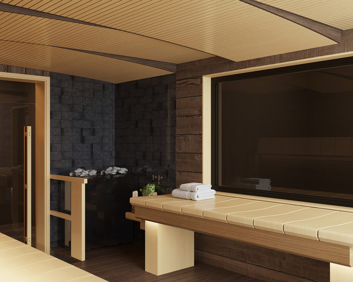 Основой этой парной является потрясающая печь Sangens W40G в черном стекле.