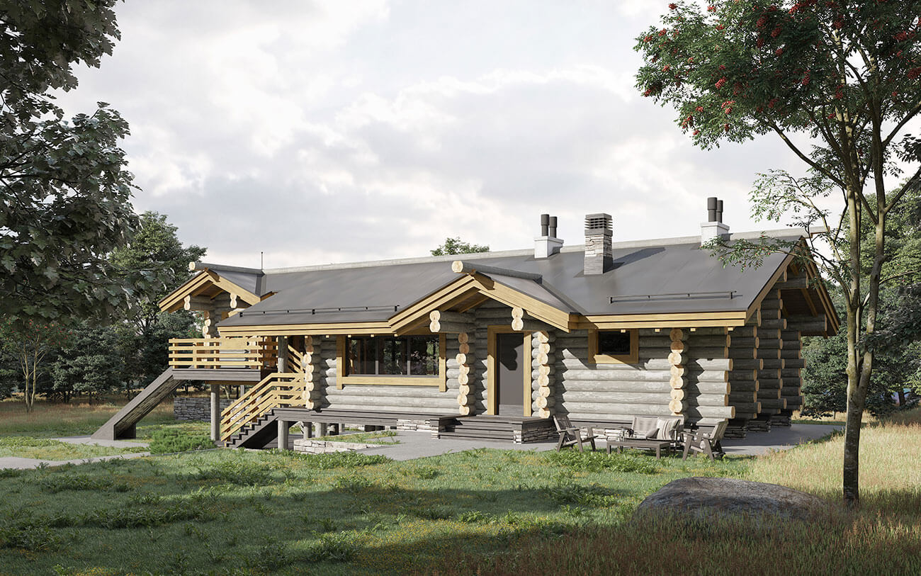 - Стены бревенчатые рубленые, Kelo диаметром 300 мм;