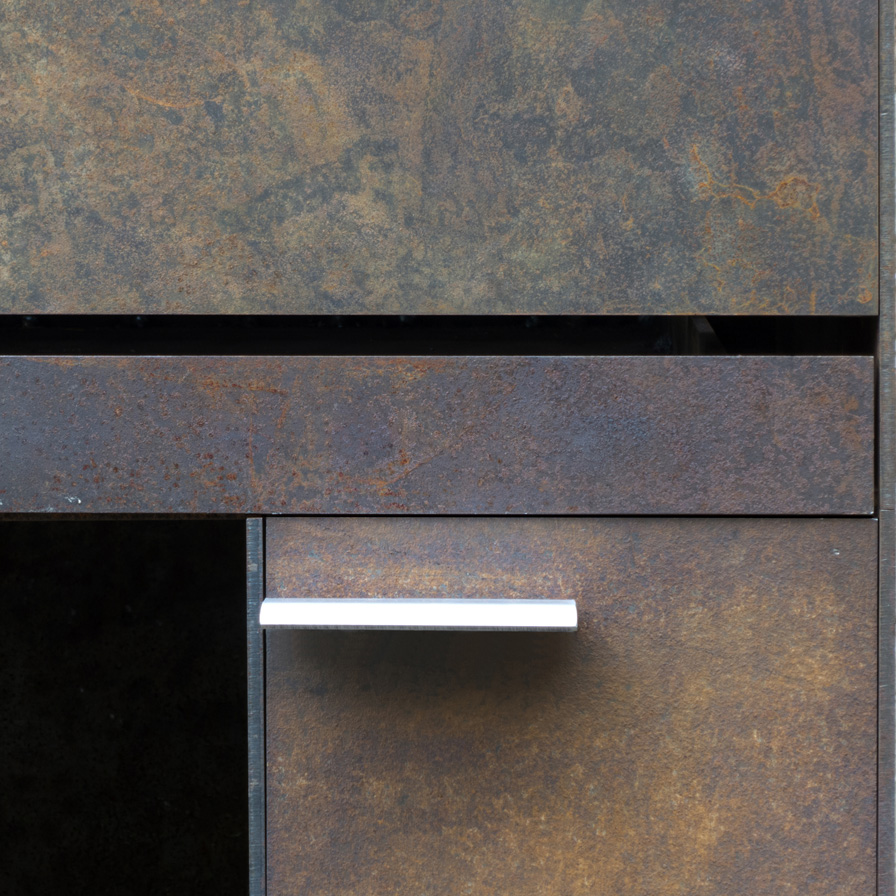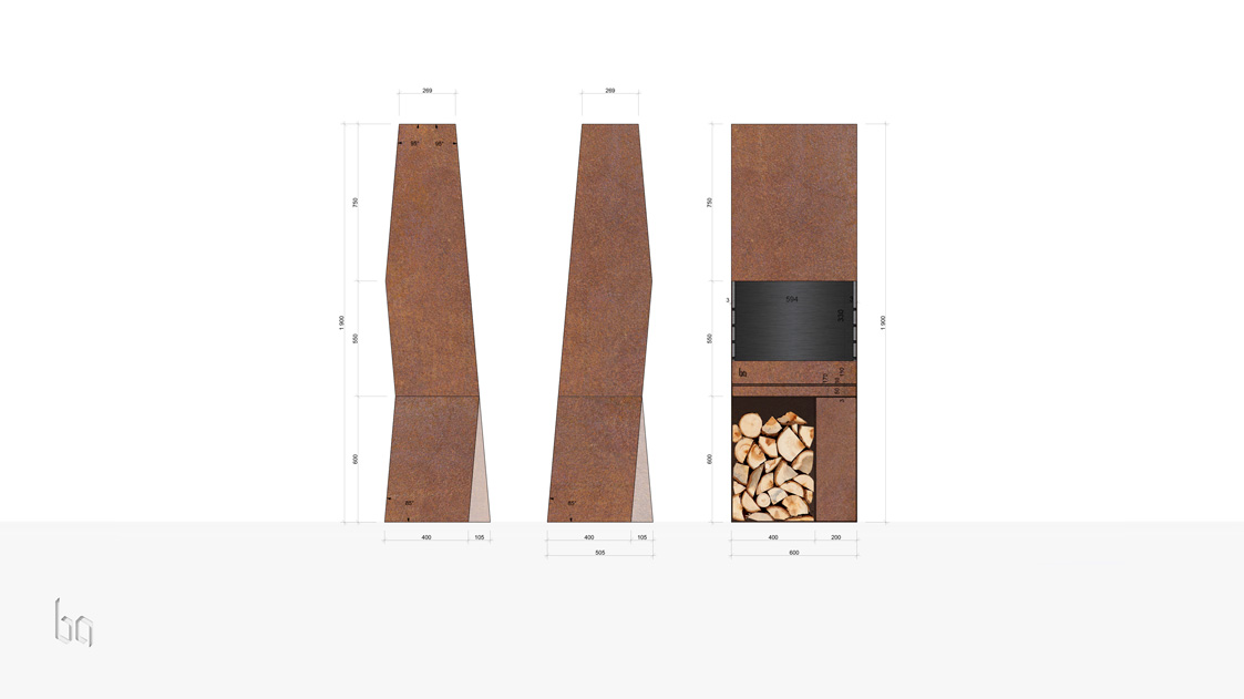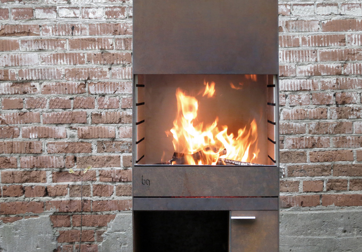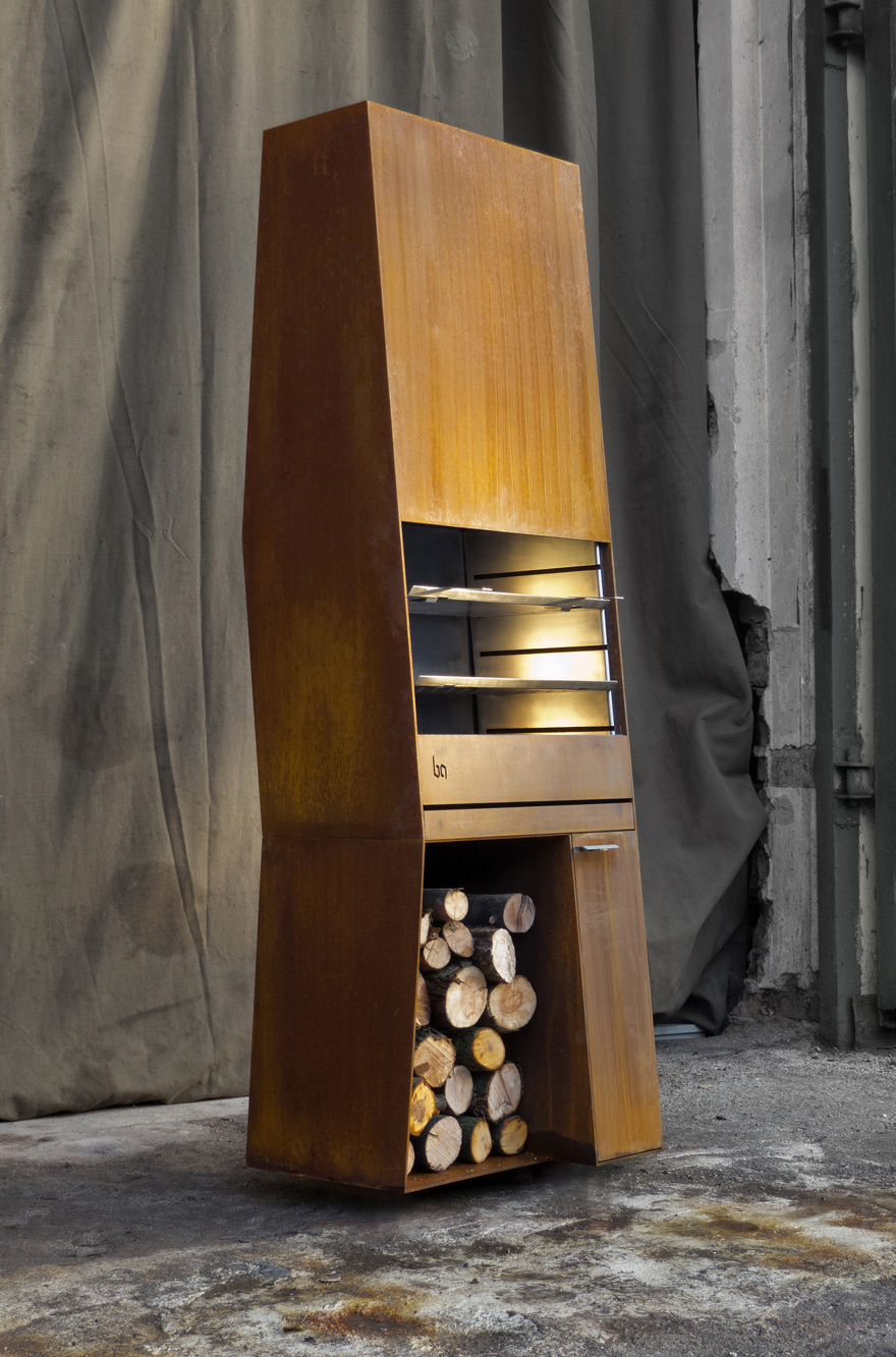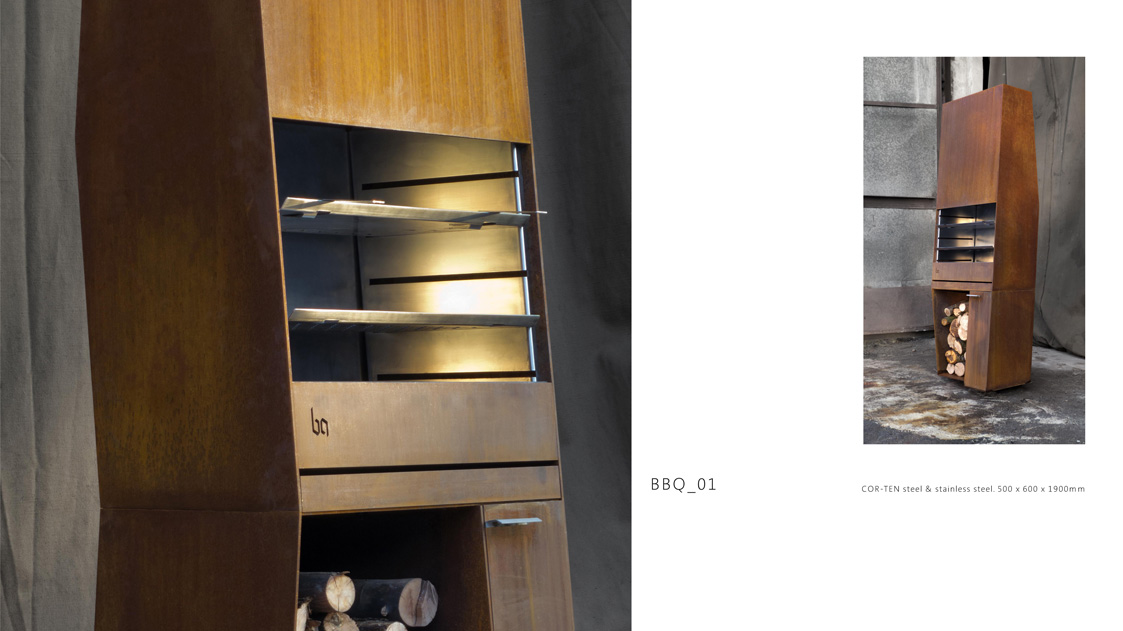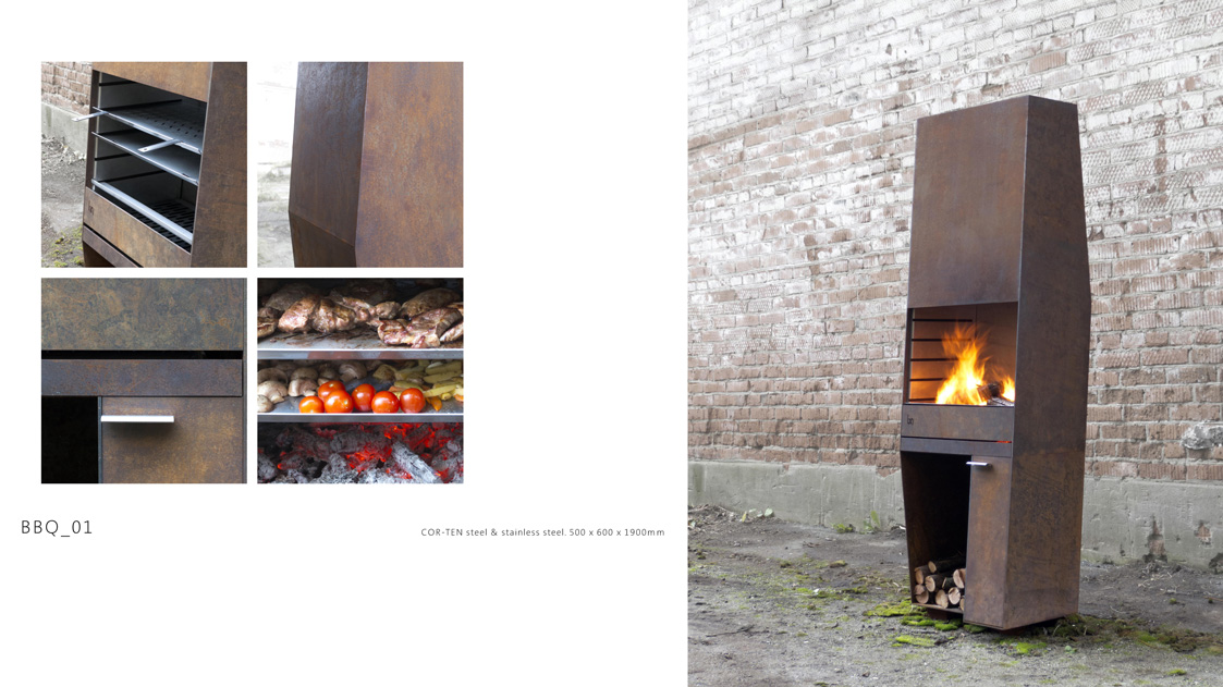 В основе образа BBQ-1 лежит идея объединения утилитарного мангала и скульптурной формы. Сложный силуэт корпуса, брутальная ржавая оболочка и стерильная чистота нержавеющего внутреннего наполнения, — все это создает цельный и притягательный образ. Функциональность в сочетании с индустриальной эстетикой делают этот объект прекрасным дополнением ландшафта практически любого приусадебного участка. BBQ-1 работает как мангал и уличный камин, он не только греет и готовит, но и дарит возможность наблюдать за живым огнем.