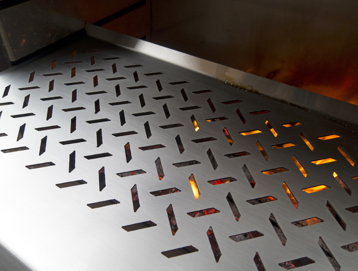 Зона готовки предоставляет широкие возможности потребителю, позволяя применять различные поверхности для жарки: от плоских противней, до решеток и отдельных шампуров. В нижней части предусмотрена ниша для дров и шкаф для хранения утвари. Модульная конструкция корпуса обеспечивает удобную транспортировку и монтаж изделия. Корпус изготовлен из коррозионностойкой стали COR-TEN толщиной 5 мм.