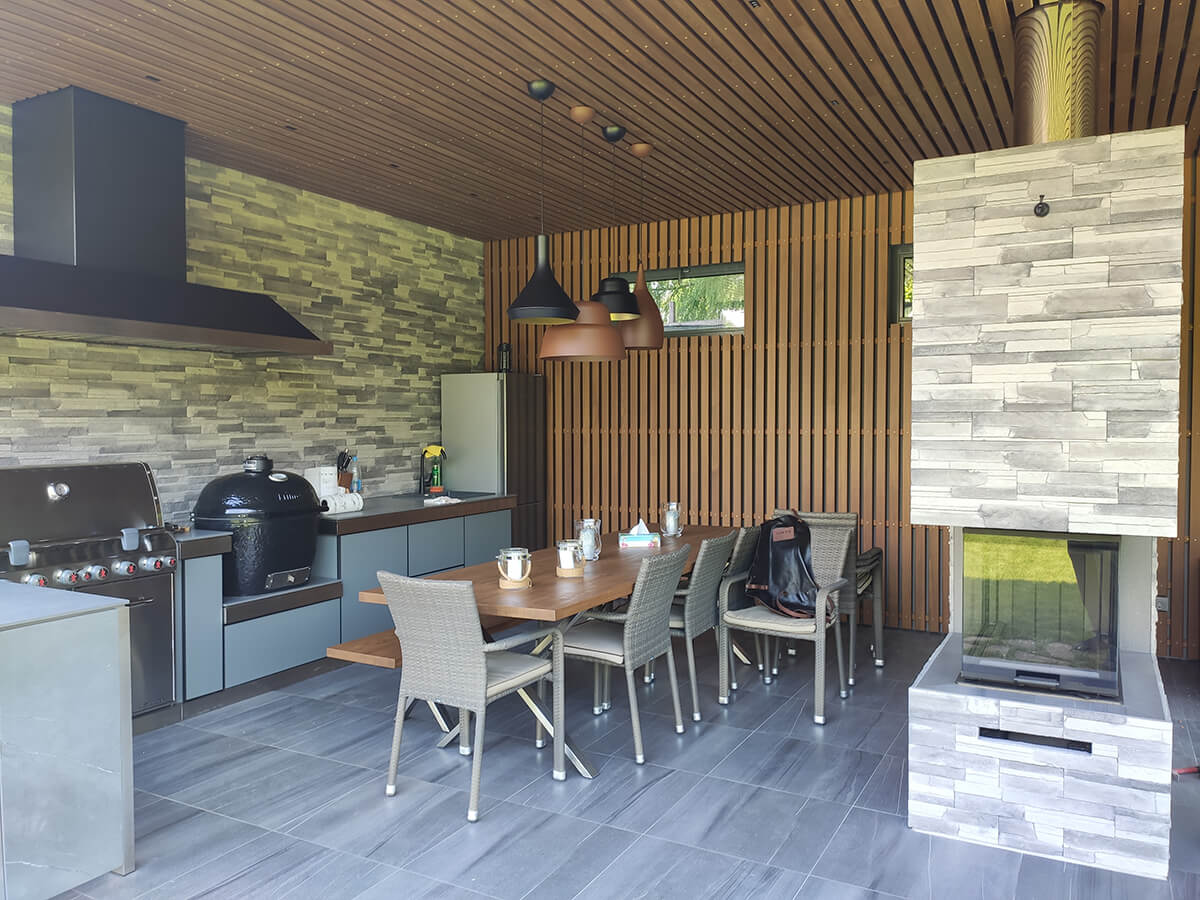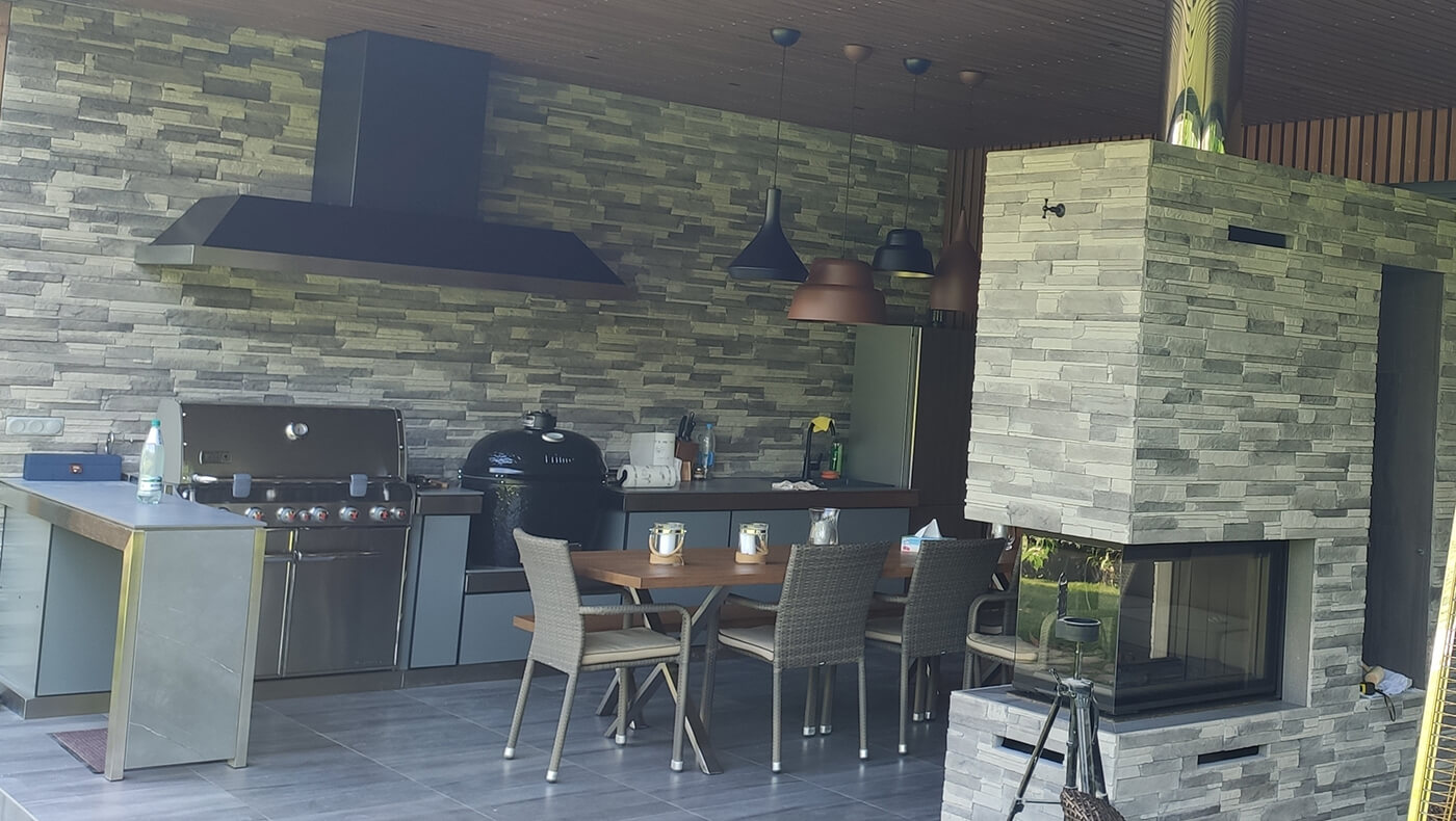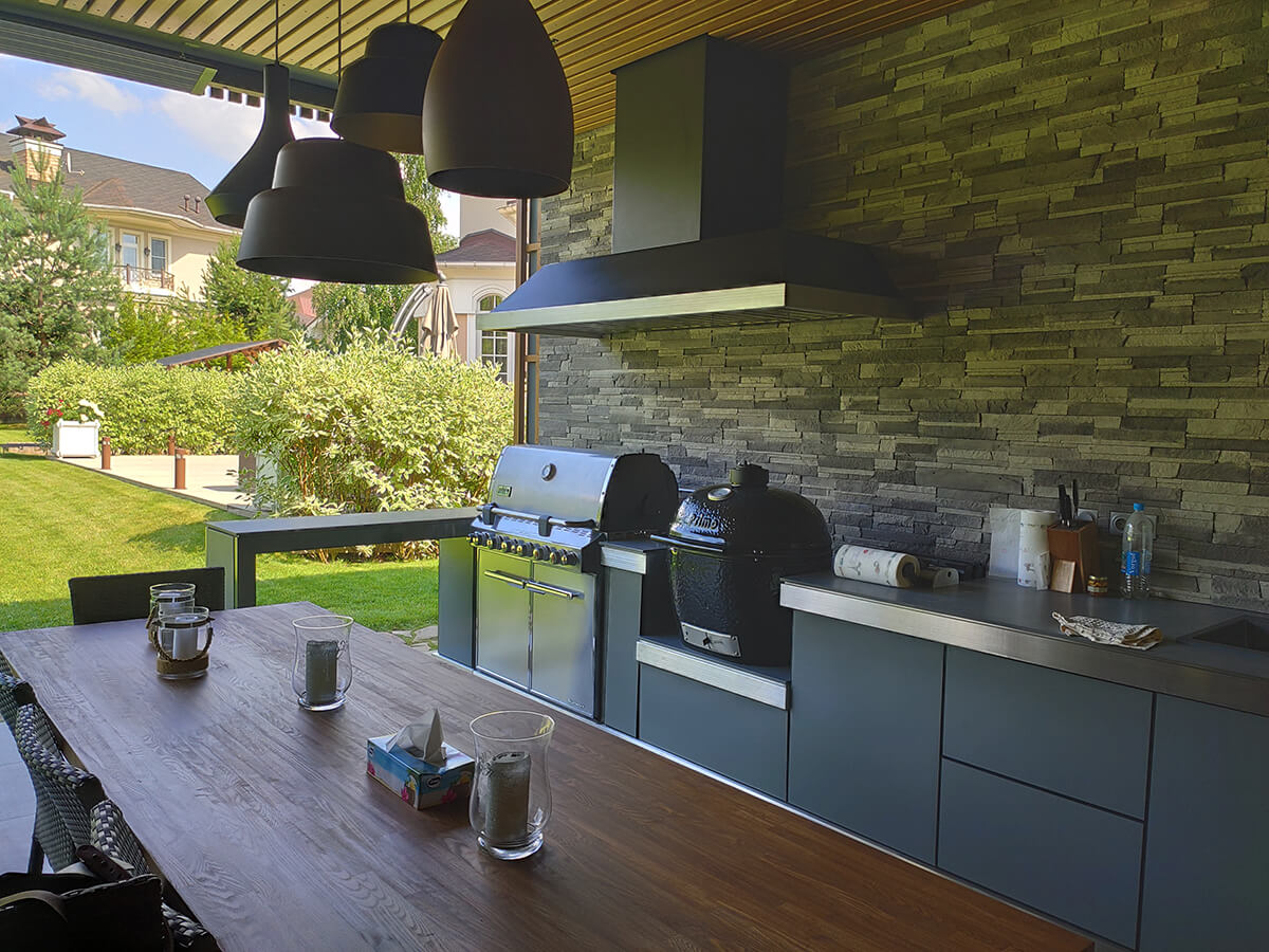 Задача — выполнить уютную и многофункциональную летнюю кухню с индивидуальным дизайном.