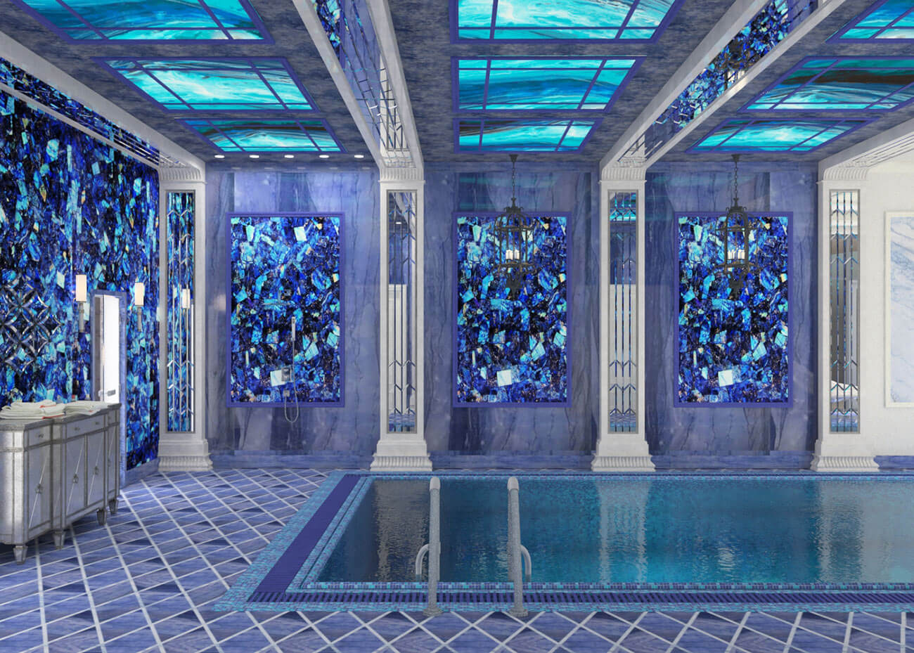 Вставки из натурального лазурита делают интерьер уникальным и невероятно красивым.