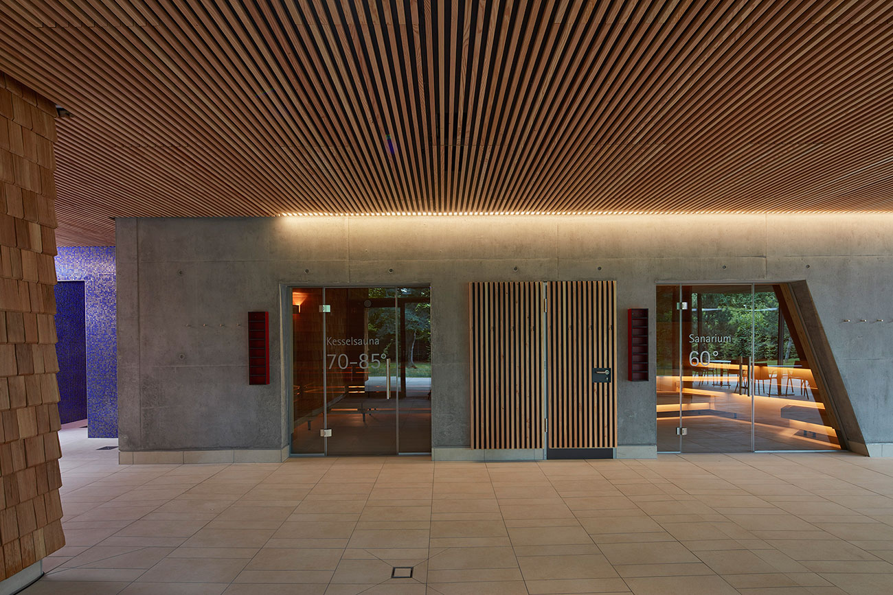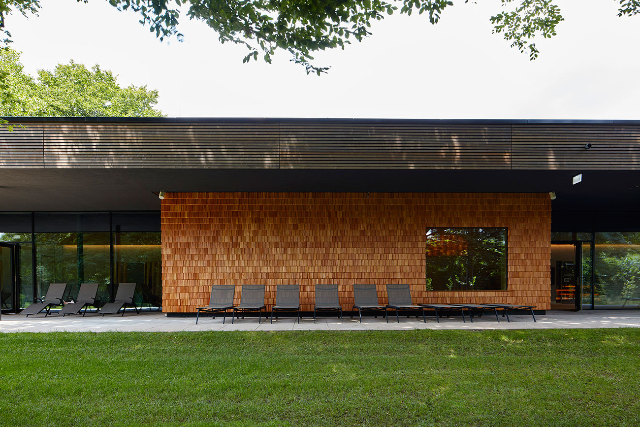 Велнесс-зона расположена в южной части здания. Здесь в распоряжении гостей паровая баня, сауны и соляные ванны, мультисенсорные души и небольшой бассейн. Изюминка этой части комплекса — отдельно стоящее здание с сауной и открытой площадкой для отдыха с видом на городской парк.