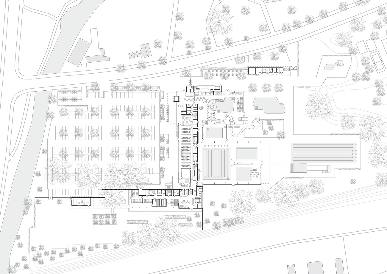В комплексе запроектированы различные типы бассейнов: для рекреационного плавания, спортивного плавания и отдельный бассейн для уроков плавания.