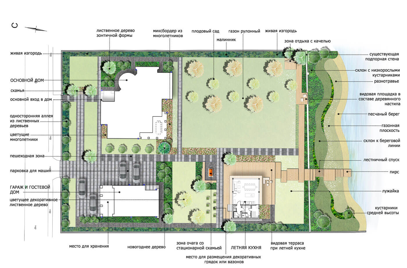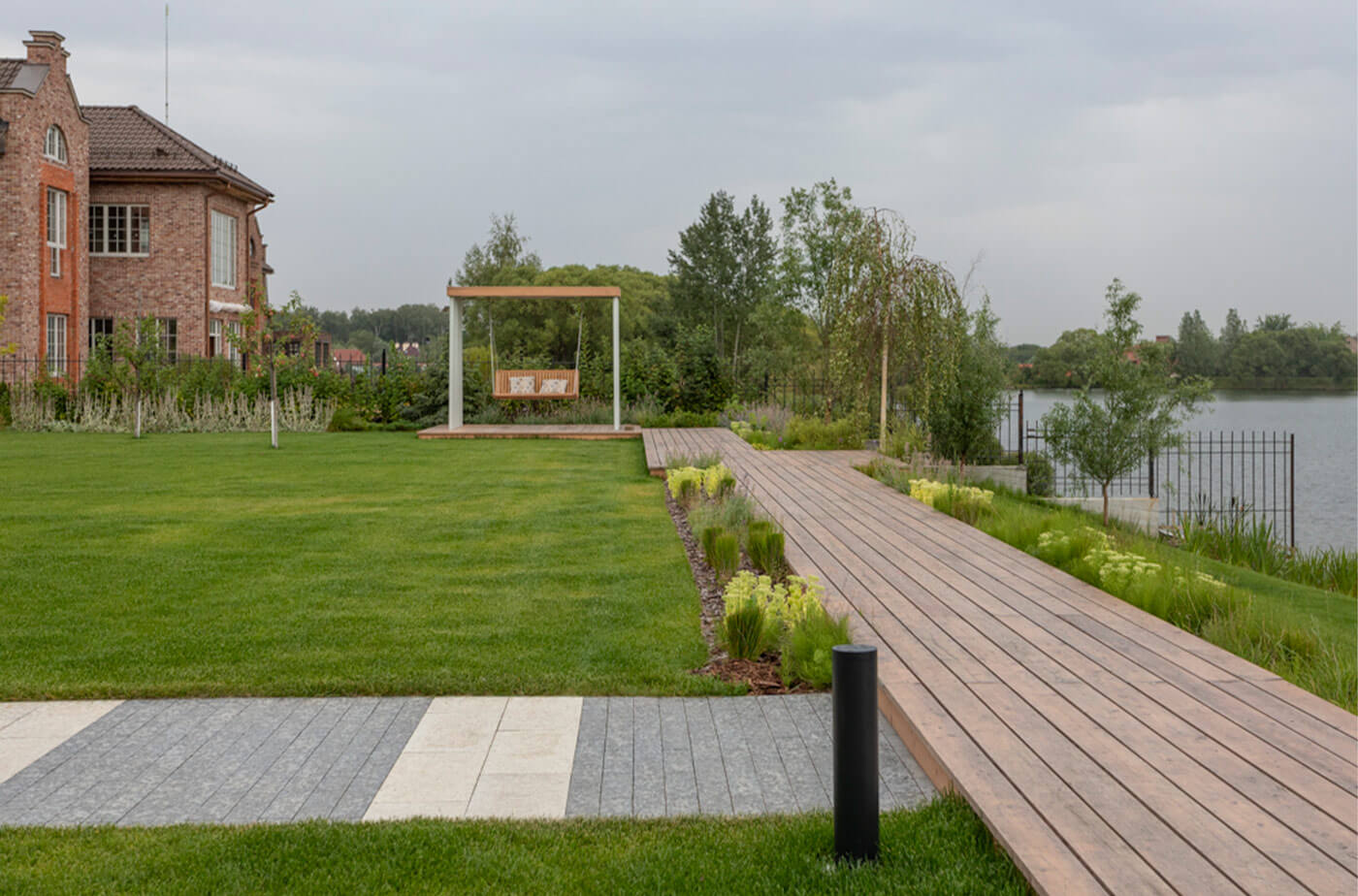 Ландшафтный проект «Бельгийская пристань» - это сочетание уникальной архитектуры и лаконичной концепции озеленения. Нашей команде удалось создать современный и функциональный сад на берегу живописного озера.