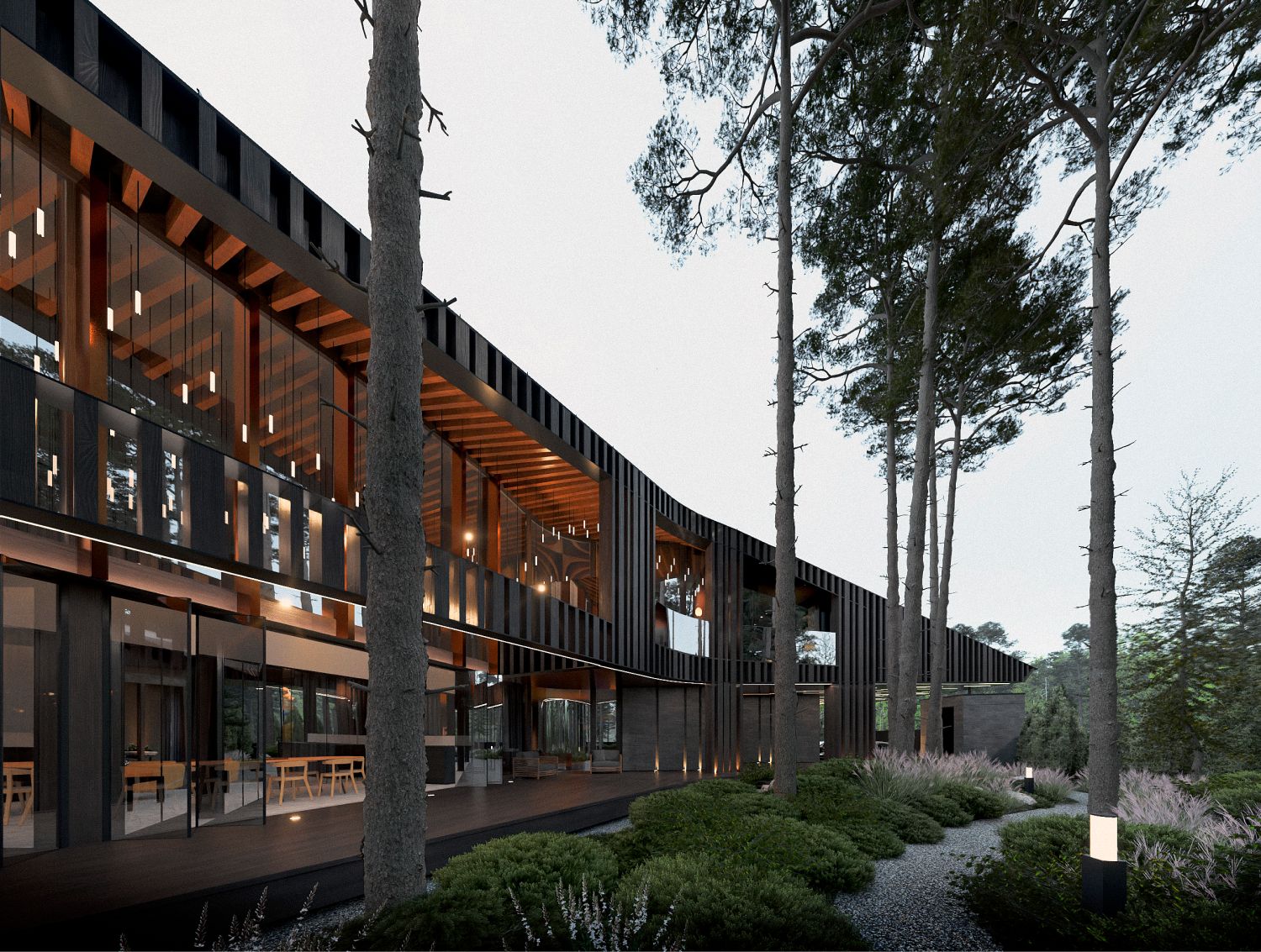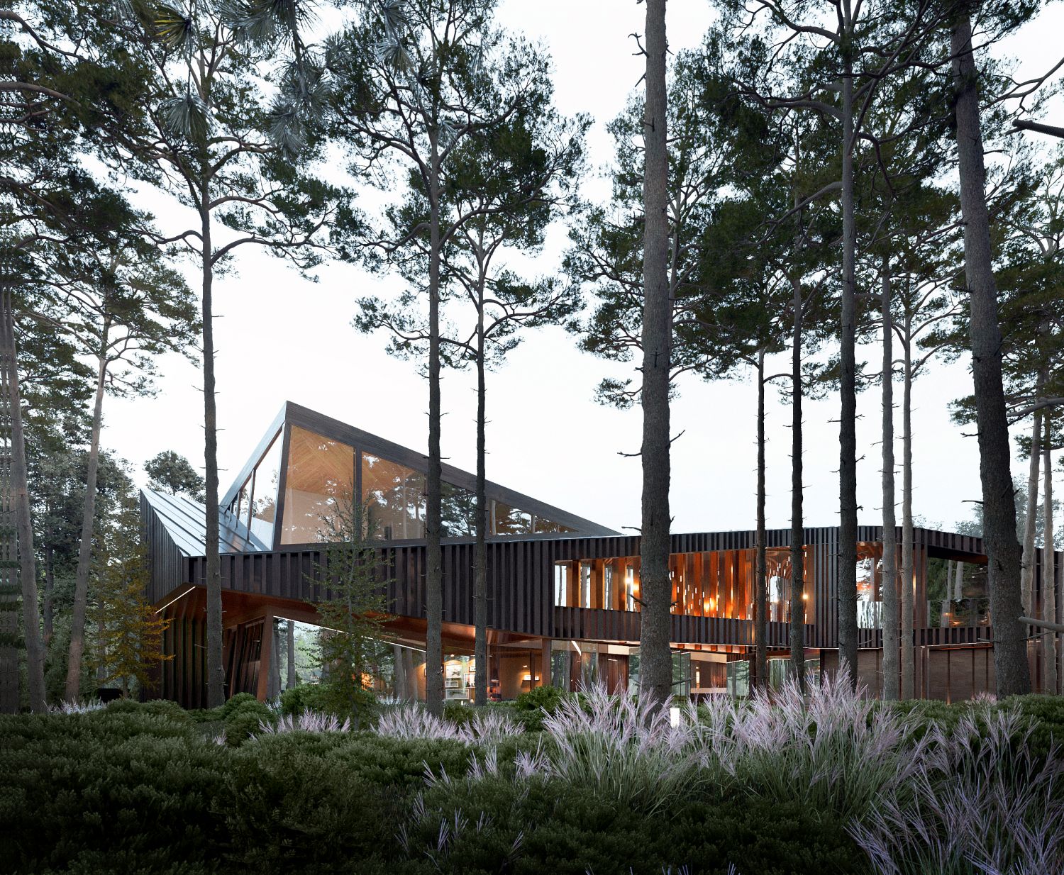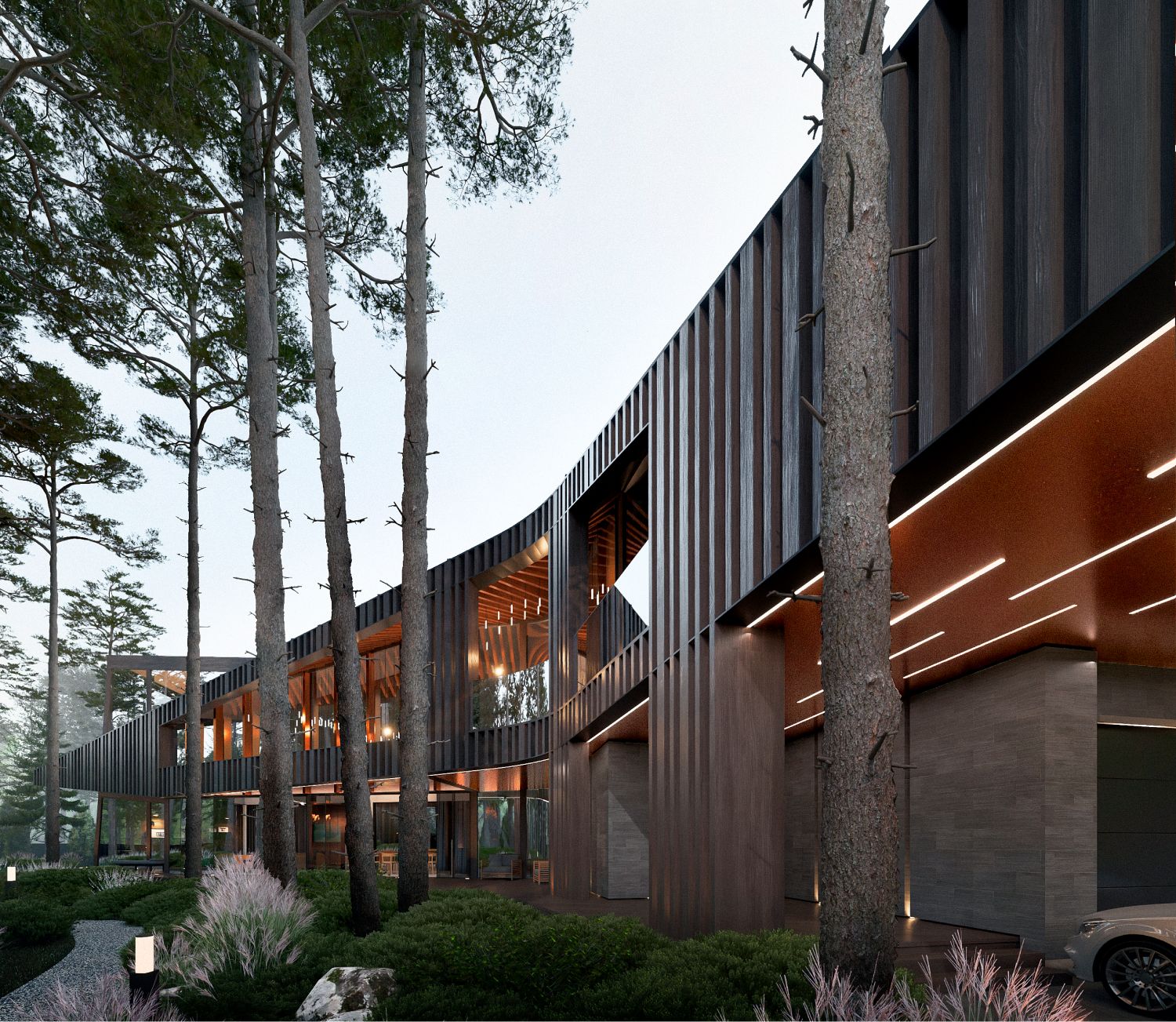 Пространство раскрывается через свет, объединяя открытость панорамного остекления с глубоким уединением. В проекте продуманы разнообразные сценарии жизни: от приемов в гранд-гостиной до отдыха в мастер-люксе, который отделен от остального дома парящим акустическим мостом. Архитектура объединяет интерьер и ландшафт, превращая природу в главную декорацию вашего дома.
