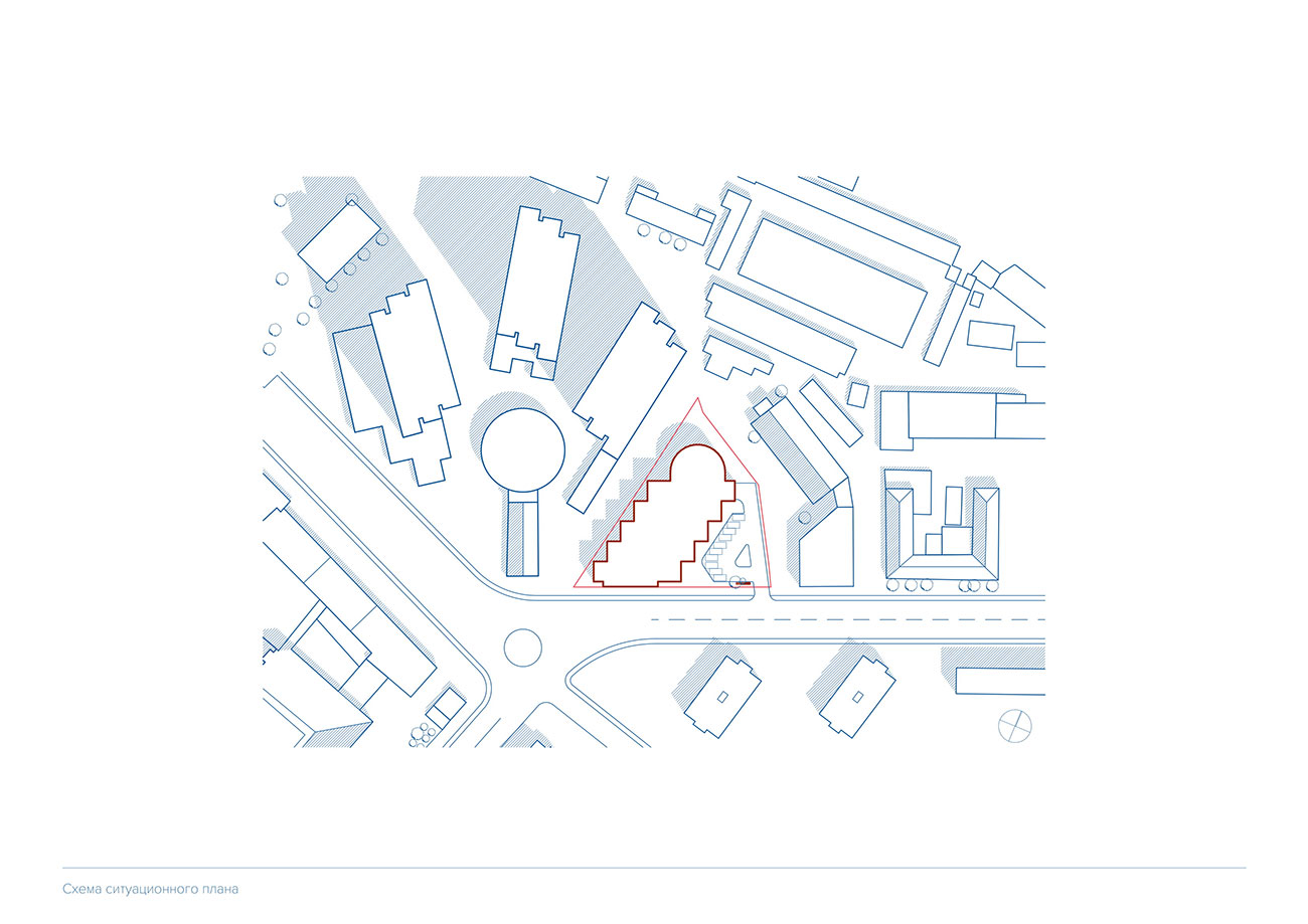 Целью проекта являлся разработка бизнес-центра класса А на участке треугольной формы, выходящем одной стороной на главную улицу, имеющую широкий тротуар, примыкающем с востока к жилой застройке, с запада — к территории средне-специального учебного заведения.
