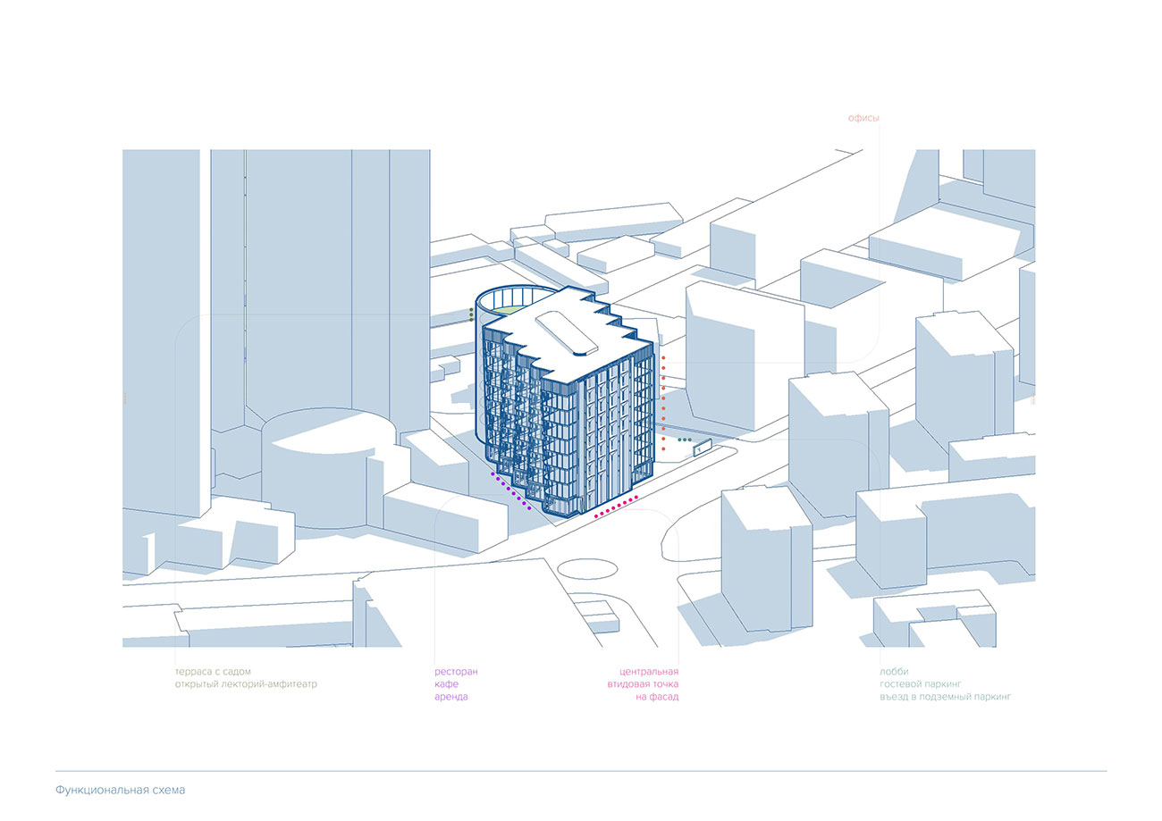 Архитектурная концепция современного офисного здания, расположенного в Пресненском районе Москвы.