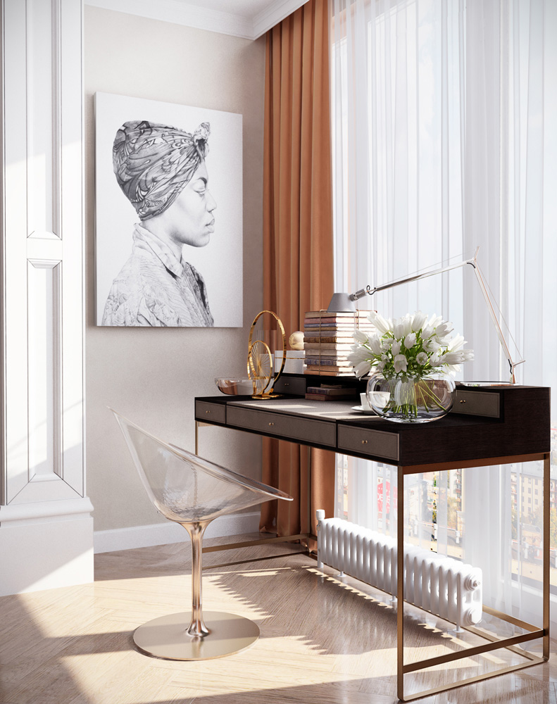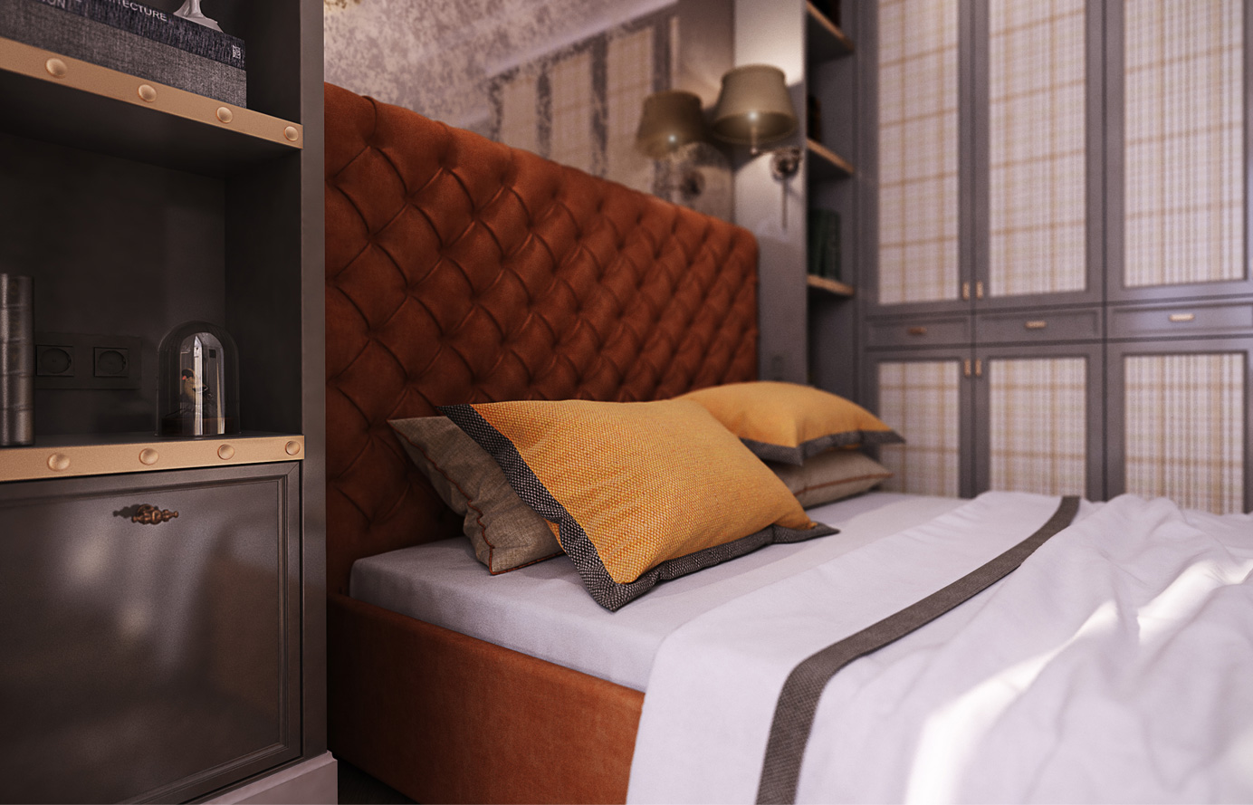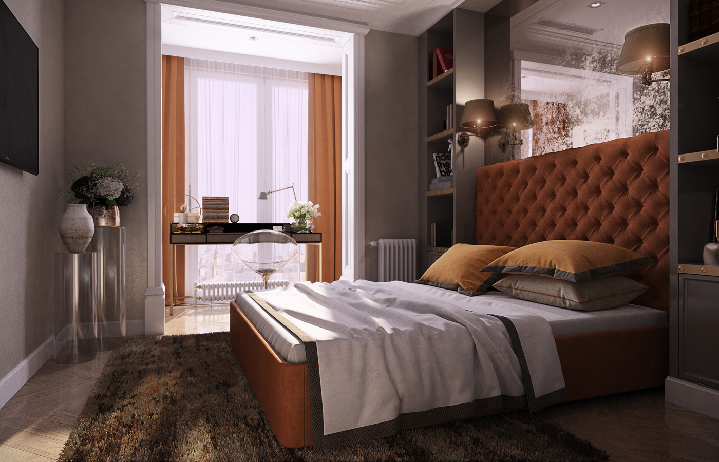 На конкурс «Красивая спальня 2017» представлена спальня родителей, которая совмещена с кабинетом, обустроенным на прилегающей лоджии.