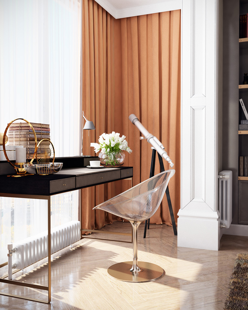 Дизайн-проект разработан в 2017 году для семьи из четырех человек: родителей и двоих детей — мальчика 9 лет и девочки 11 лет.