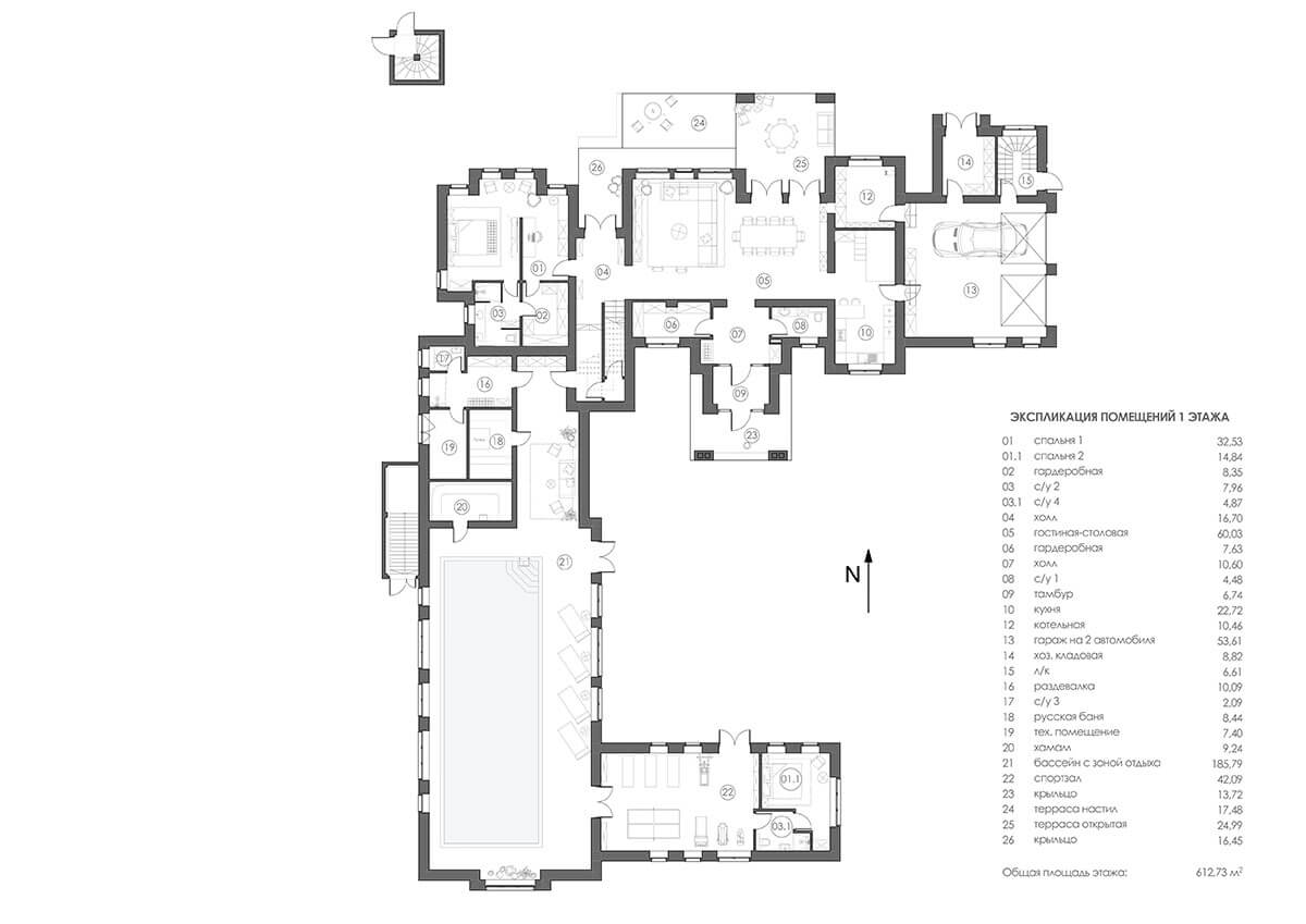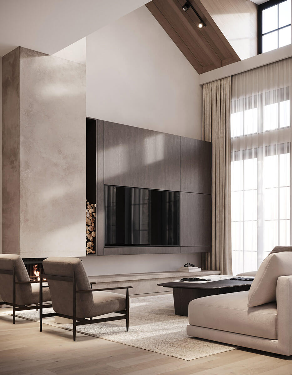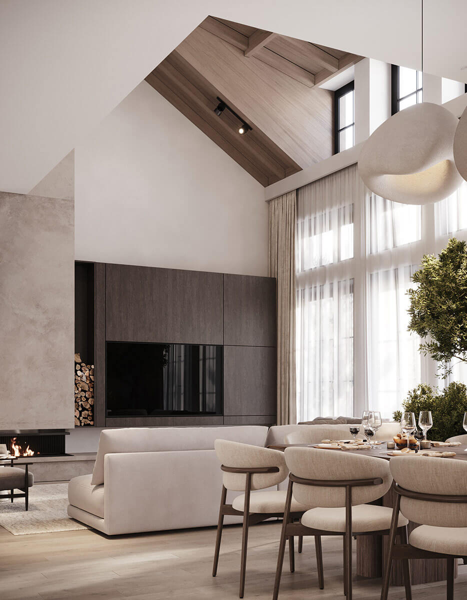 Интерьер для частного жилого дома в стиле шале площадью 892 м2.