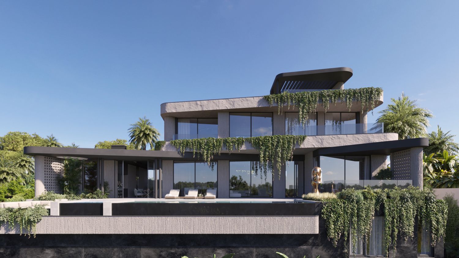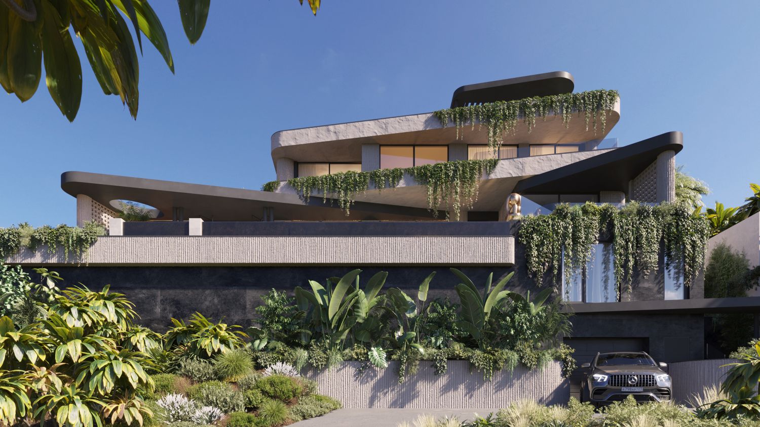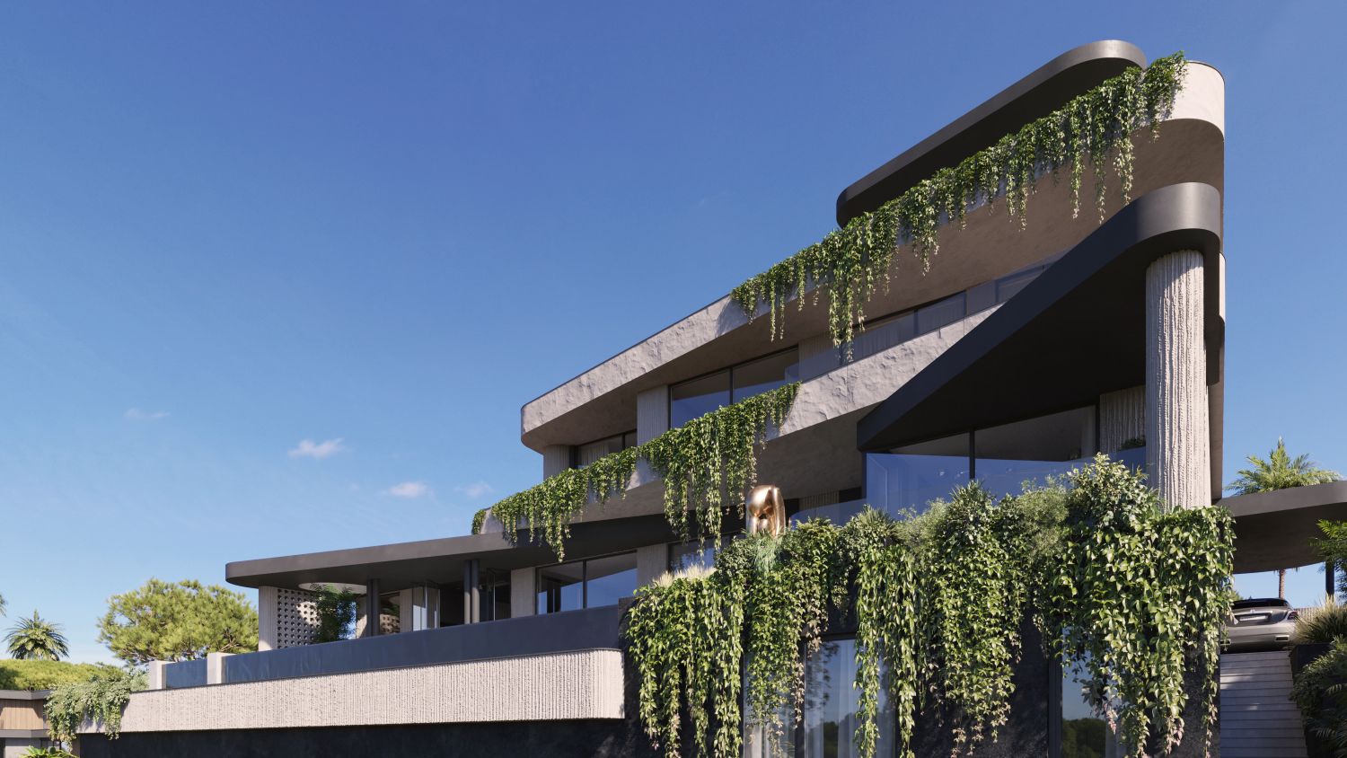 Проект виллы площадью 350 м² — это архитектурное воплощение принципов биофильного дизайна, где форма следует не только функции, но и природному контексту. Расположенная на участке с перепадом высот 8 метров, вилла органично вписана в рельеф: террасы плавно повторяют линии ландшафта, а криволинейные очертания крыш становятся естественным продолжением местности.
