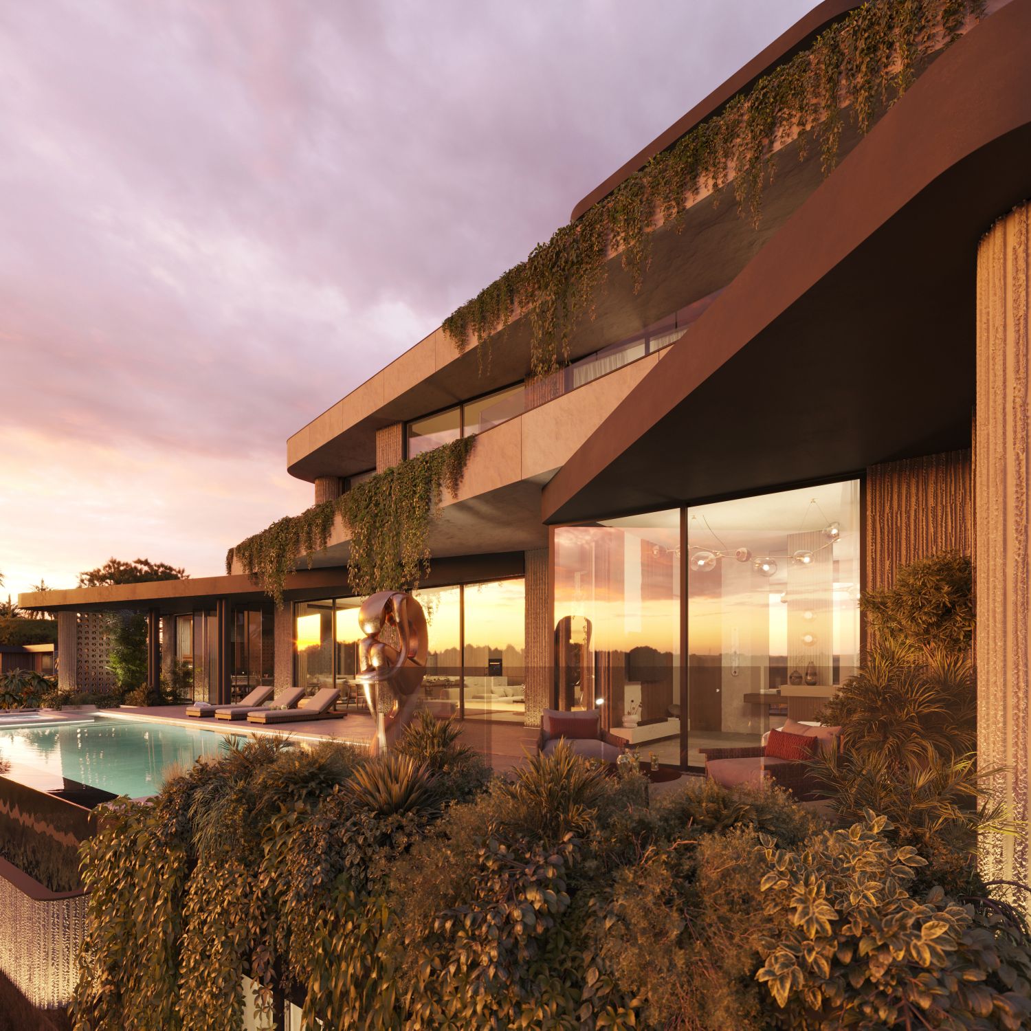 Пространство организовано как единая экосистема, где все помещения — от приватных спален до общественных зон — объединены общим принципом открытости природным стихиям. Растения, свет и тень выступают здесь не просто элементами благоустройства, но полноценными участниками архитектурной композиции. Это архитектура для тех, кто видит в своем доме не изолированное убежище, а пространство для непрерывного диалога с окружающей средой, где минимализм становится не стилем, а философией жизни.