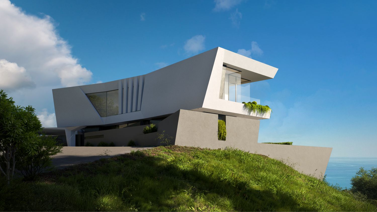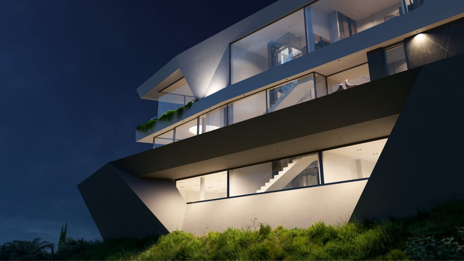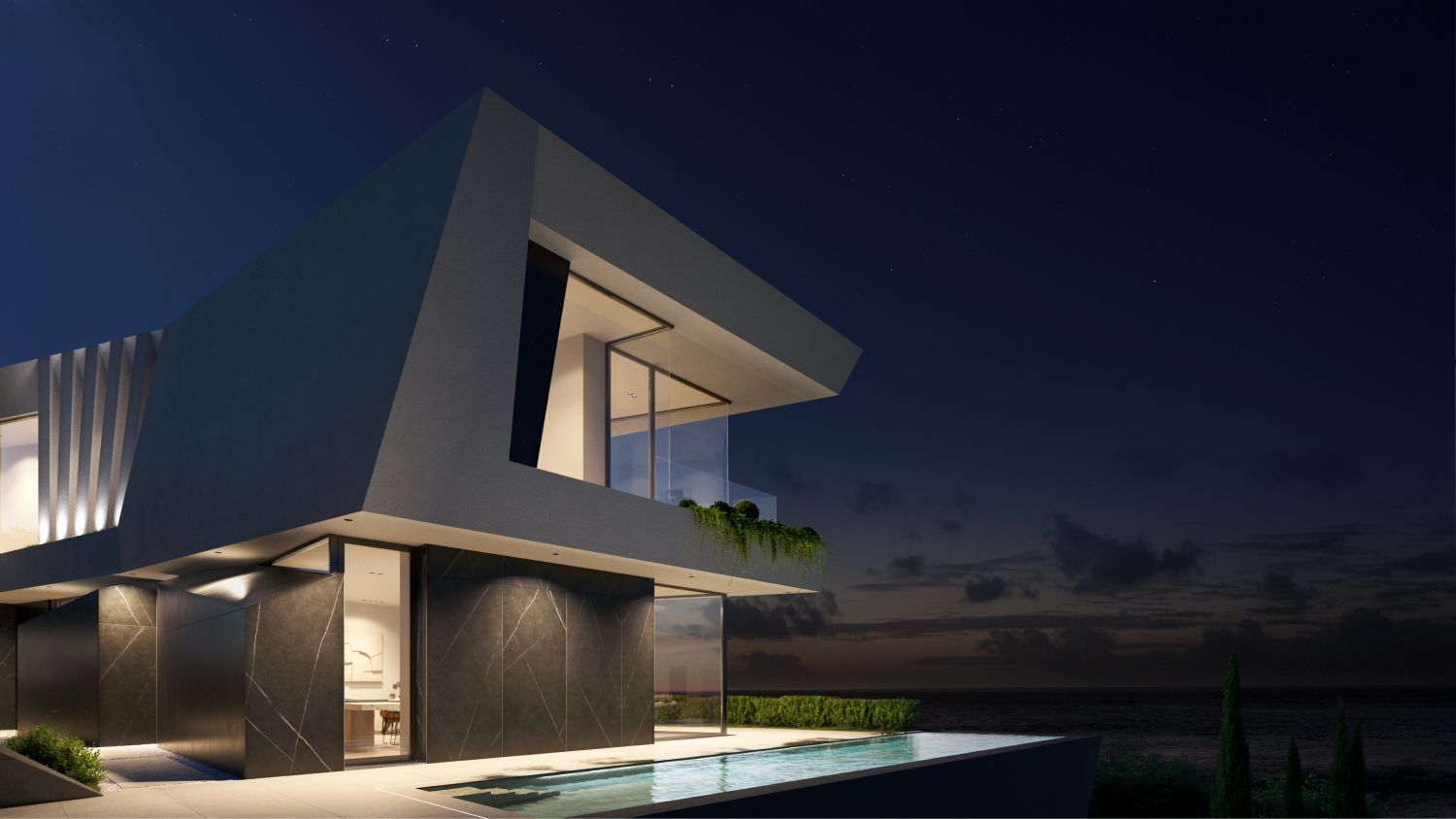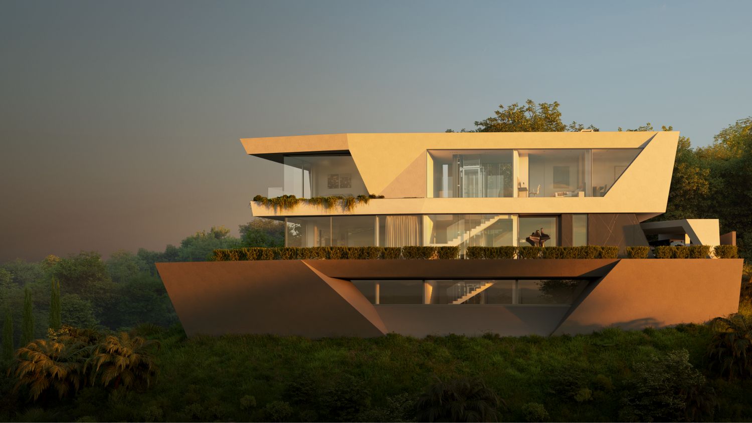 В основе архитектурного проекта виллы «Старк» лежит образ космического парусника — легкой, устремленной вдаль структуры, где граница между внутренним и внешним пространством становится подвижной и едва уловимой. Здание словно скользит над рельефом, подчиняясь законам не земного притяжения, а свободного полета.