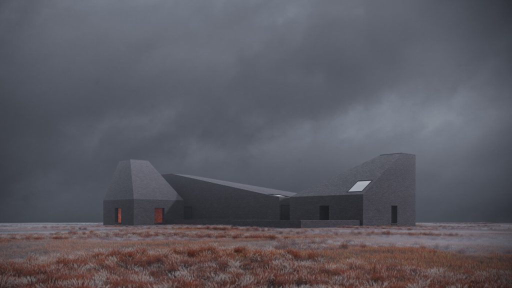 Основной идеей данного проекта является уход от привычных шаблонов современного частного домостроения. Главная задача — создание уникального образа, монументальной доминанты, которая гармонично вписывается в аскетичный ландшафт.