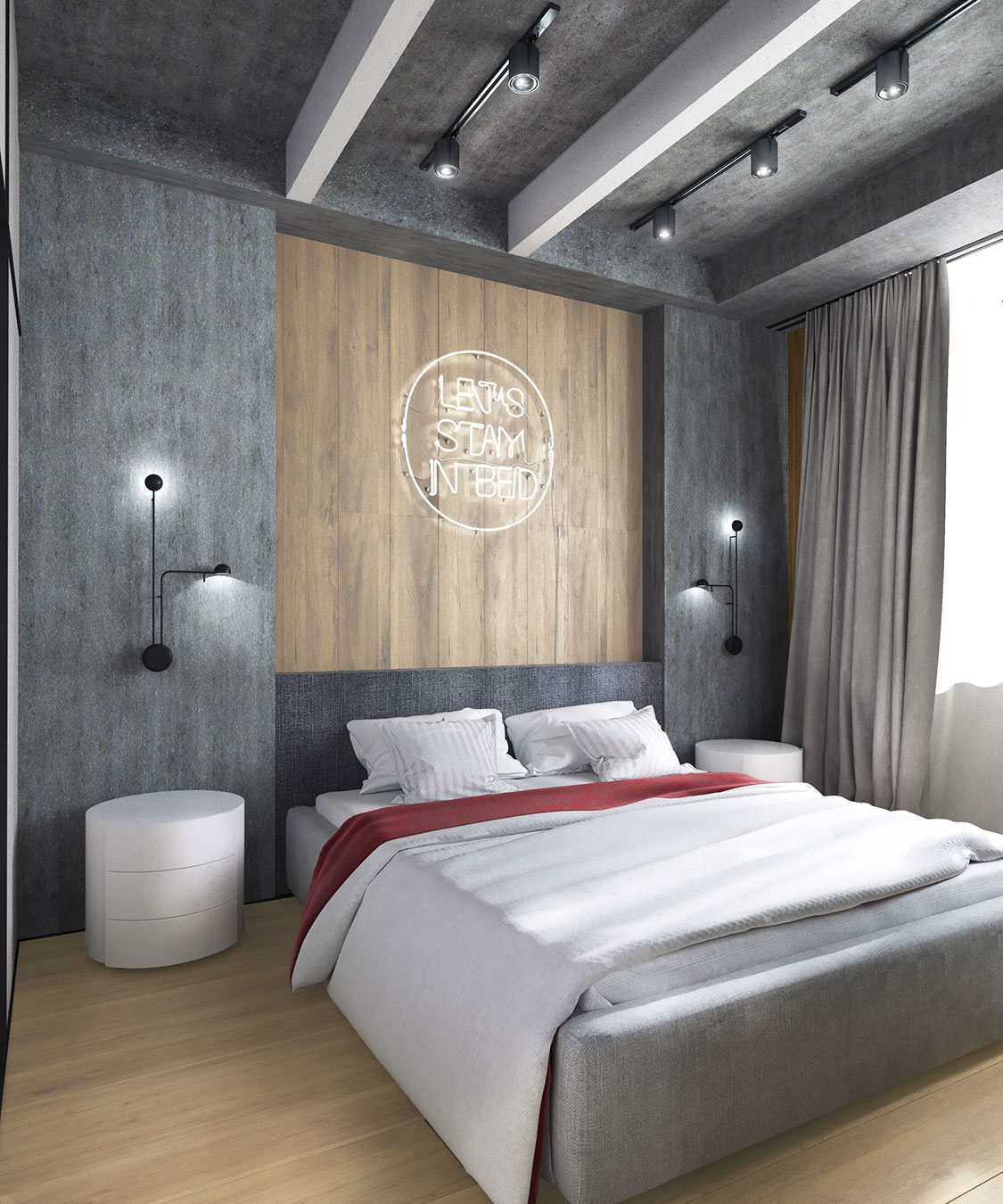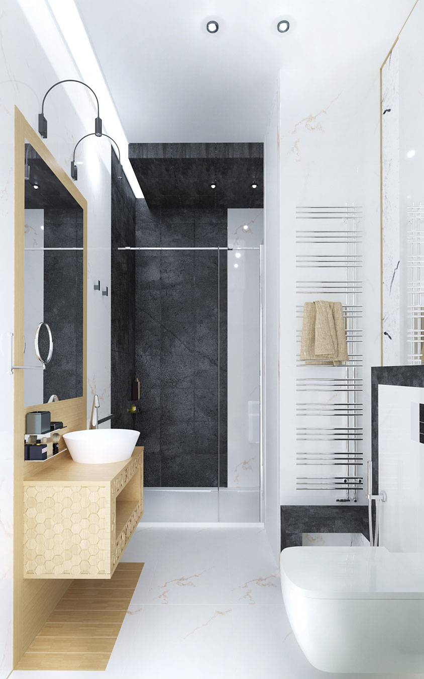 Смелая интерпретация индустриального стиля в интерьере апартаментов олицетворяет современный и динамичный образ жизни их владельца.